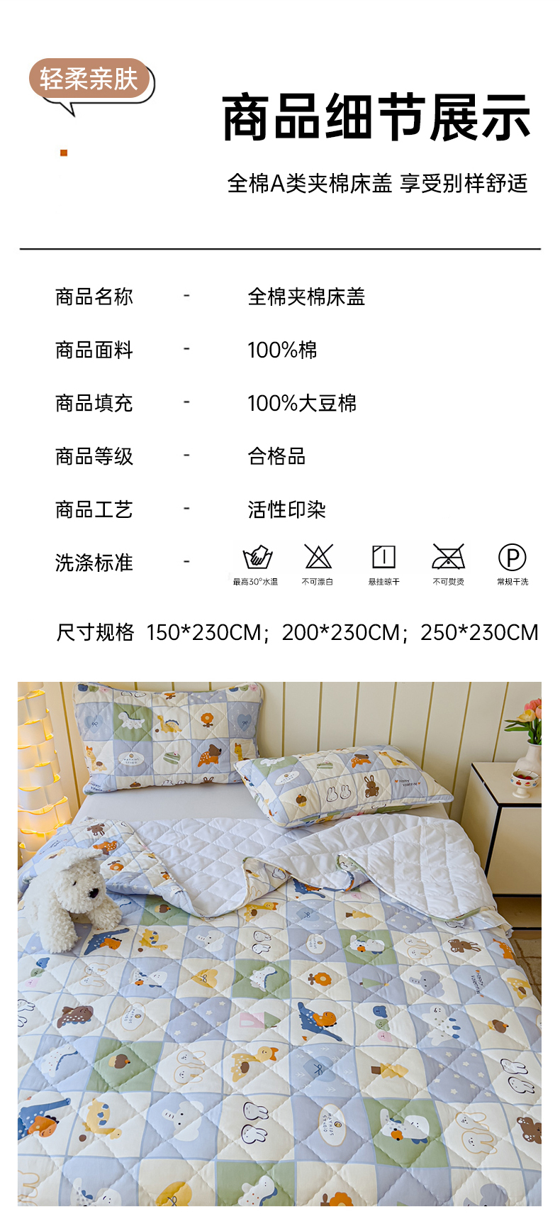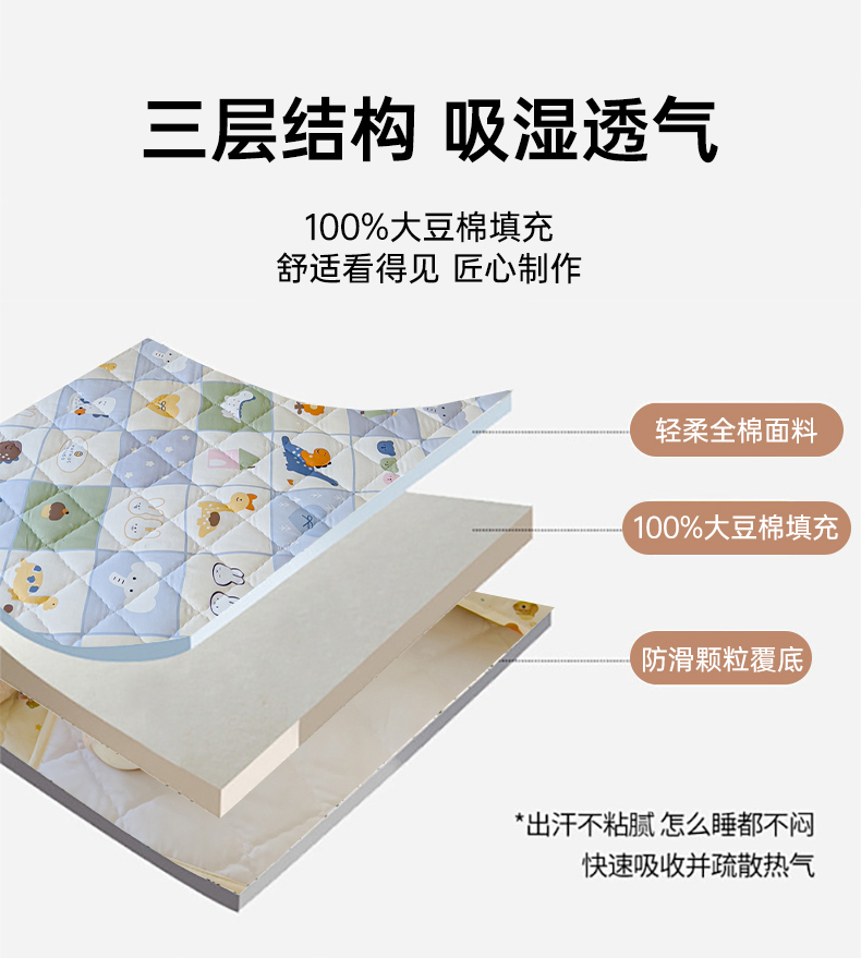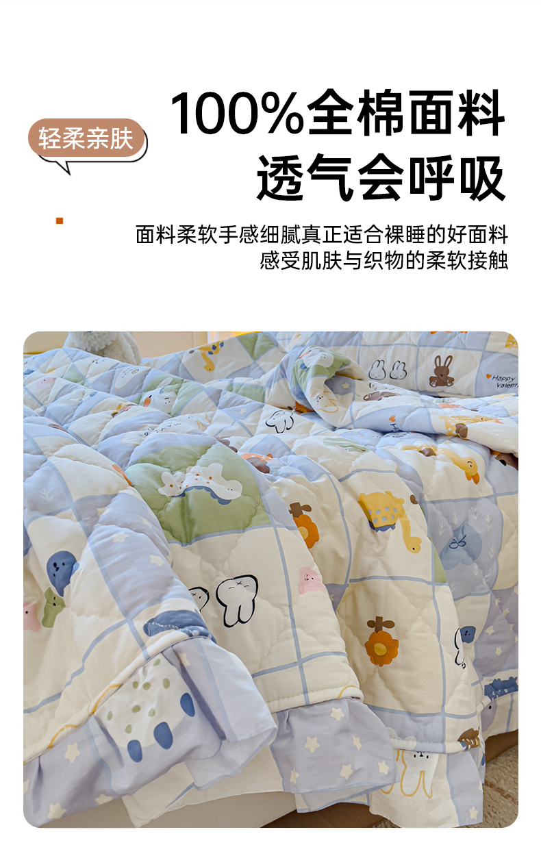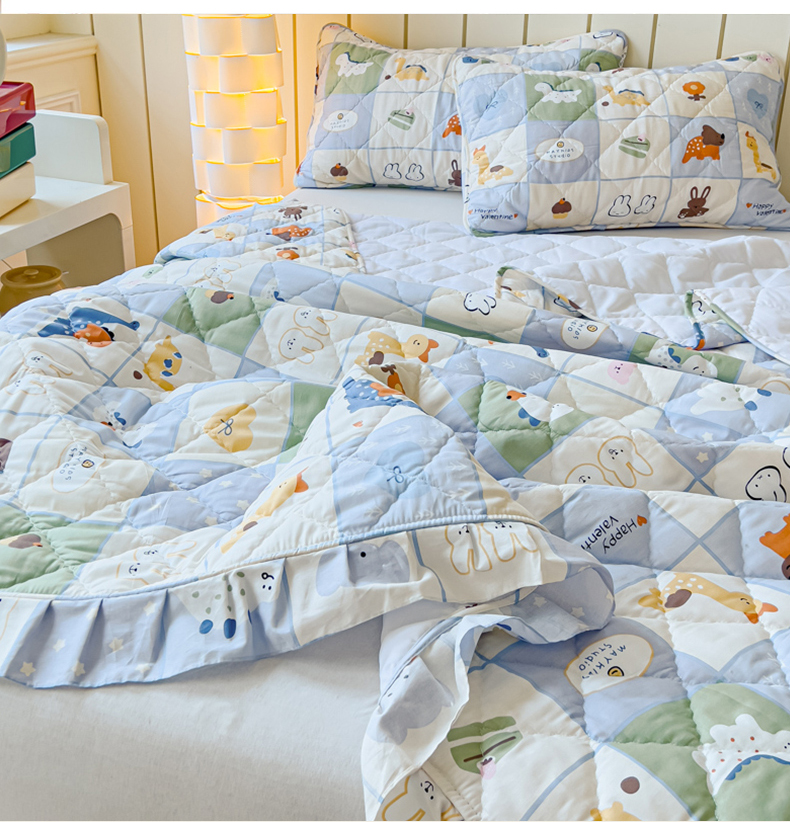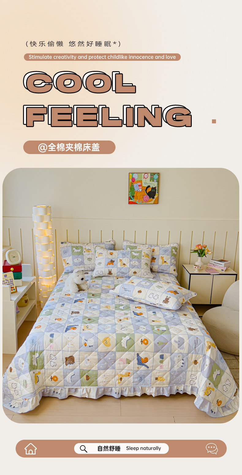 商品名称:U品汇 2025新品A类全棉夹棉床盖纯棉100%棉绗缝三件套炕垫褥子13372 G蜡笔画