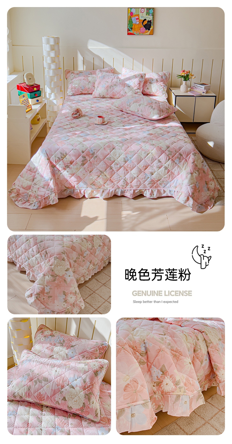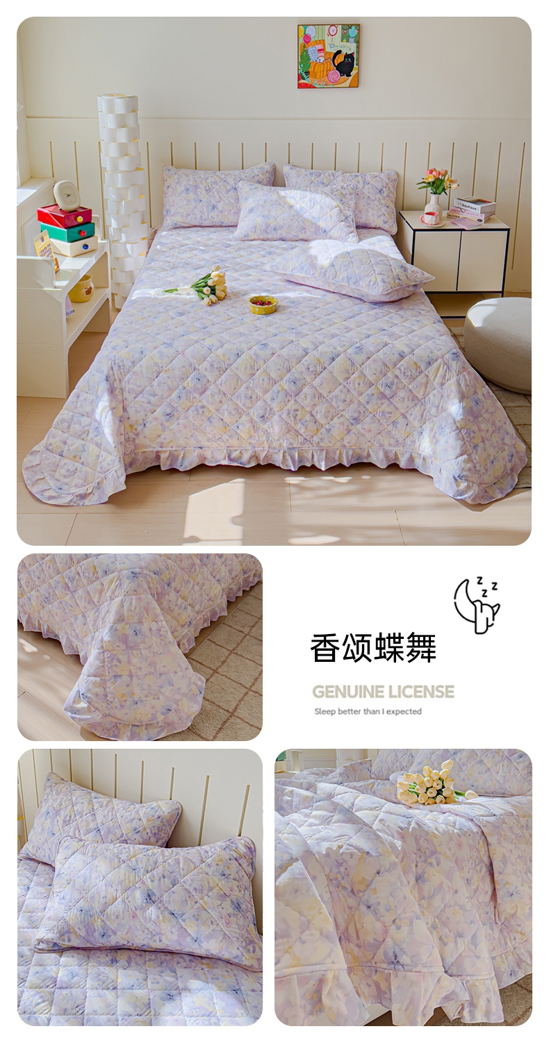 U品汇 2025新品A类全棉夹棉床盖纯棉100%棉绗缝三件套炕垫褥子13372 G蜡笔画