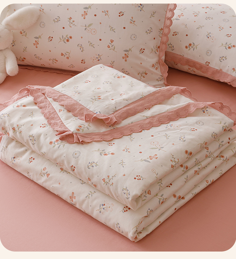 优被业 2025新款全棉韩式小碎花花边夏被 爱莲娜