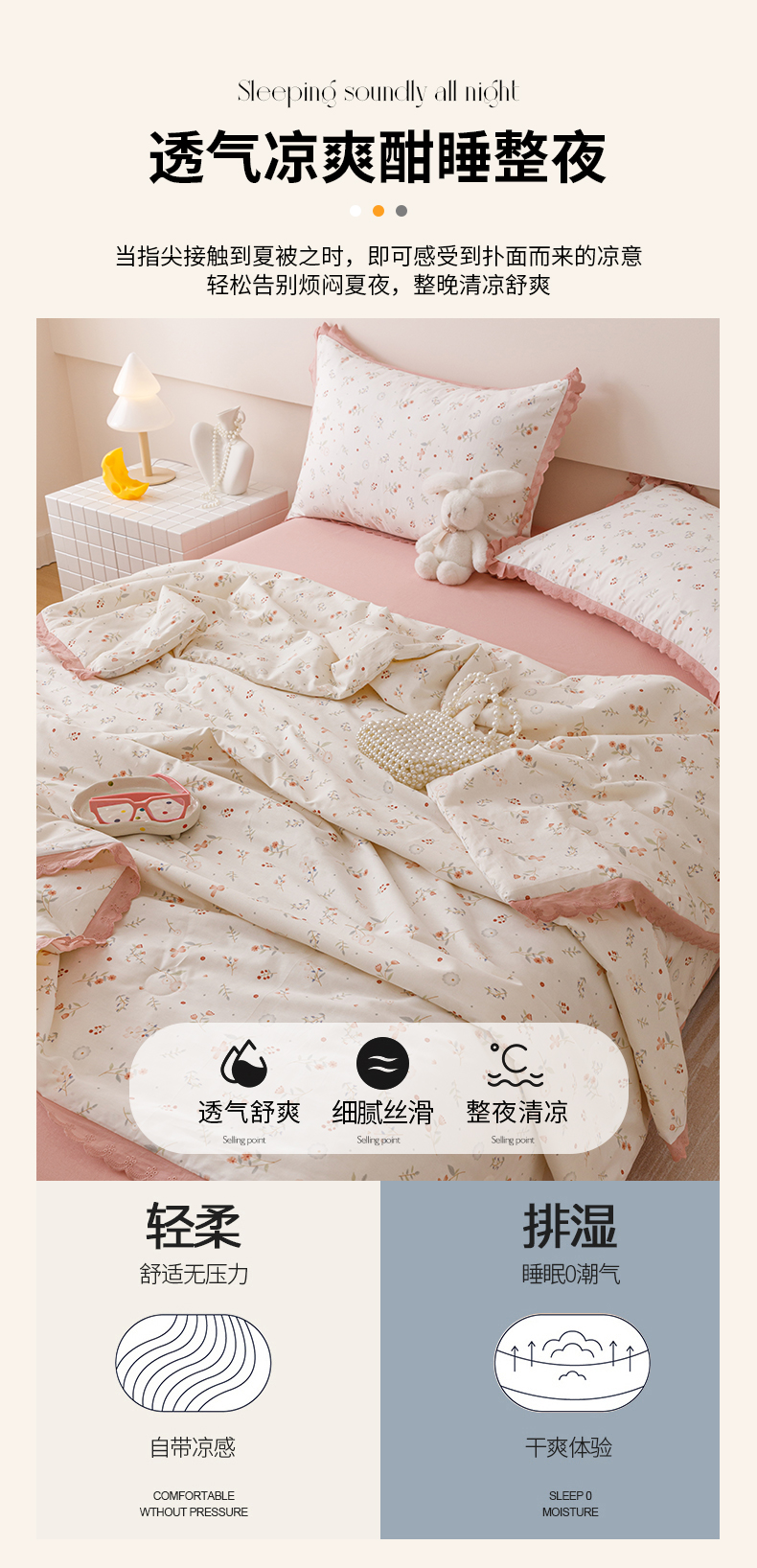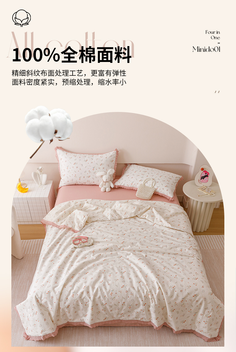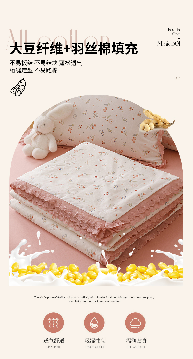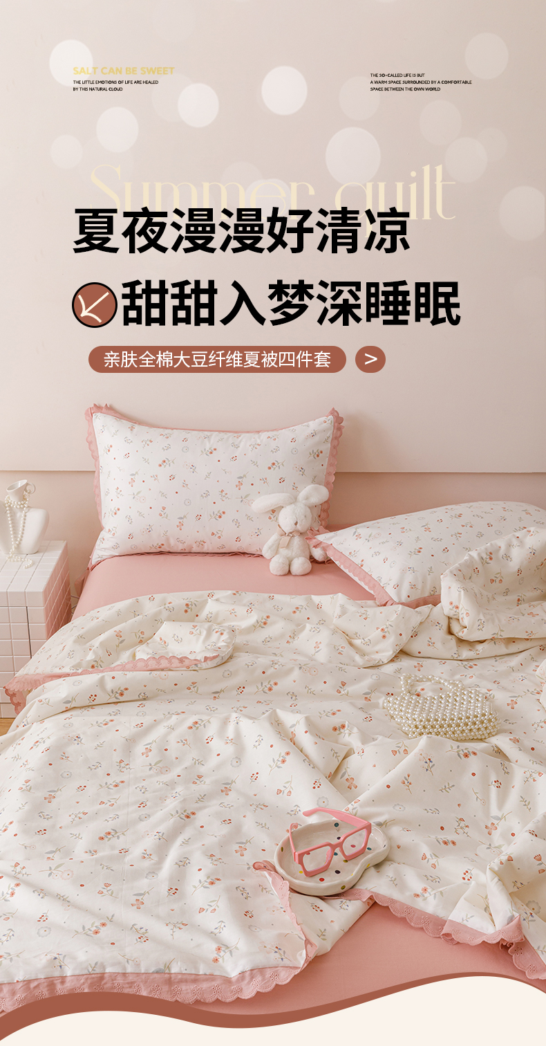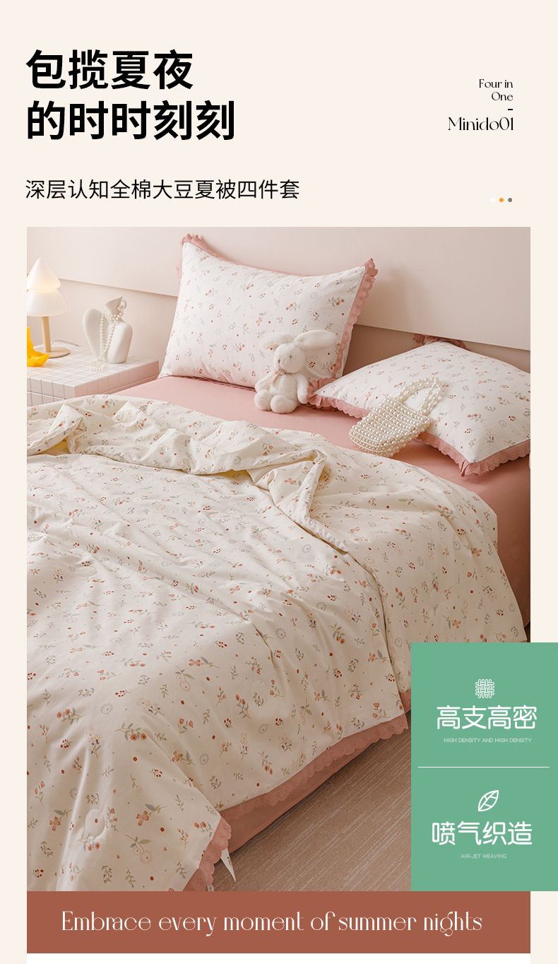 (总)优被业 2025新款全棉13372大豆夏被四件套小碎花系列,比菲兔,风姿,静笙,玲珑小兔,菱格,洛可可,梦露熊,妙影,葡萄仙子,奇迹世界,浅夏,少女心,守护甜心,素颜,田园沐歌,抱抱熊,妃子笑,复古花,露娜,梦田,蜜拉,茉莉花,挪威风情,如愿,山茶花,四季予你,仙草,小贝熊,樱桃季