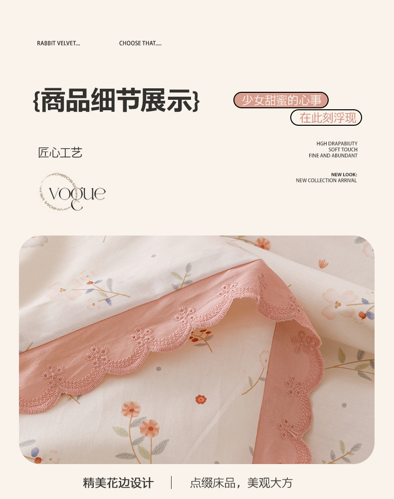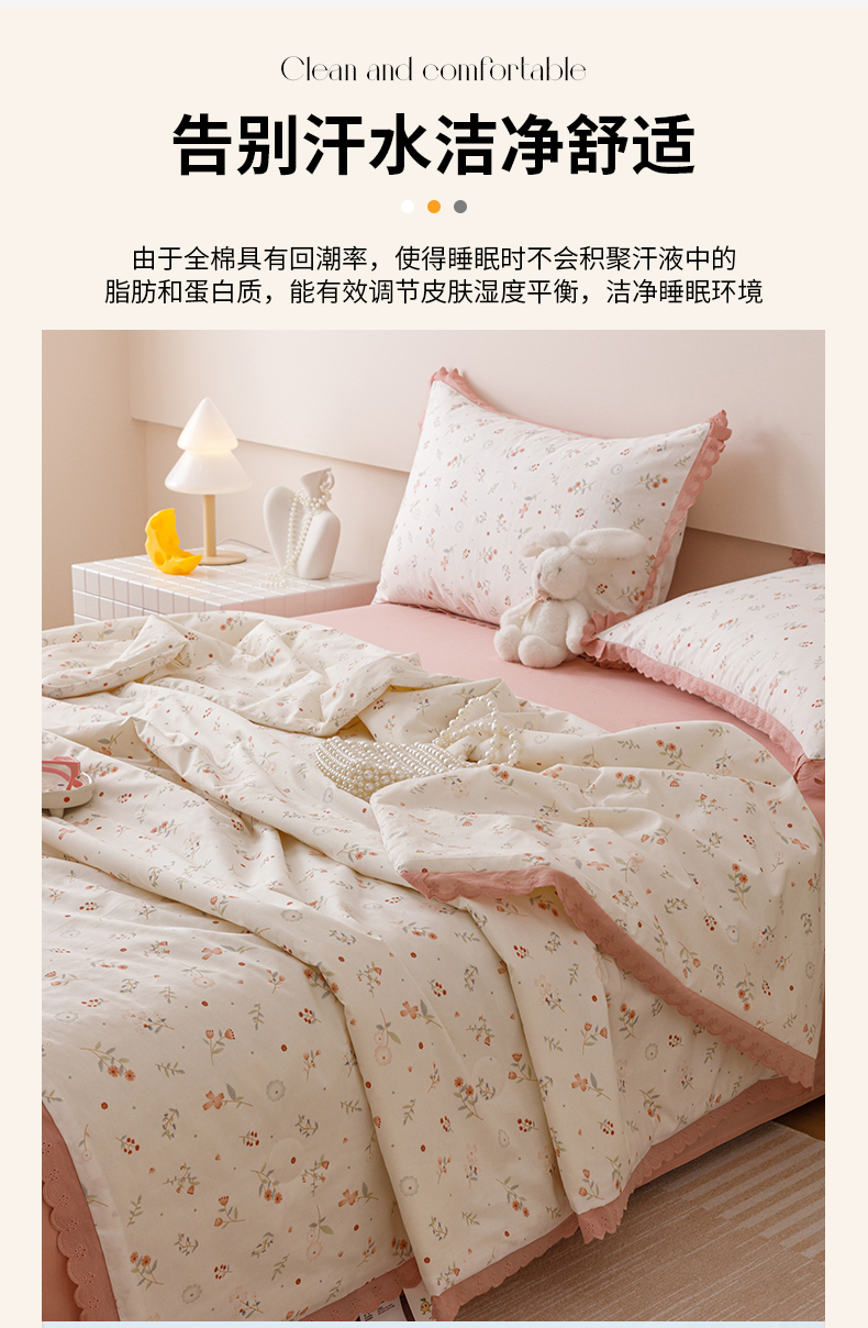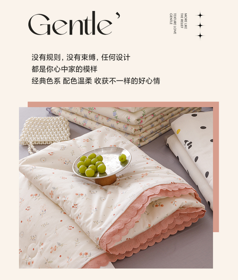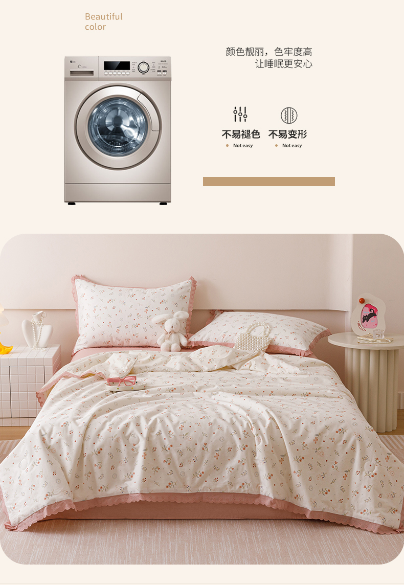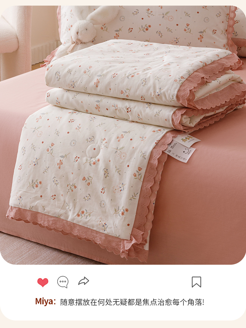 • 91家纺网 家纺一手货源 找家纺 优被业 2025新款全棉韩式小碎花花边夏被 爱莲娜