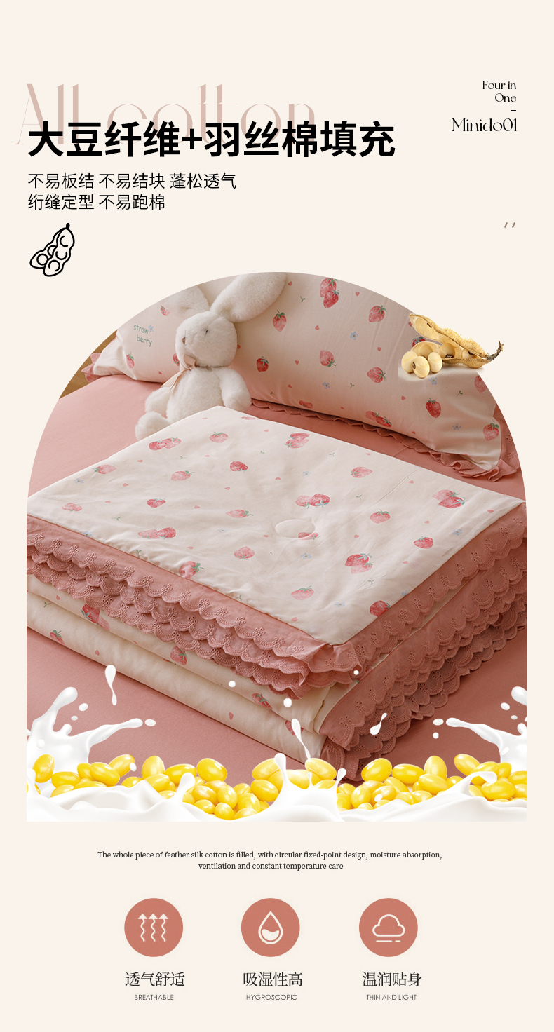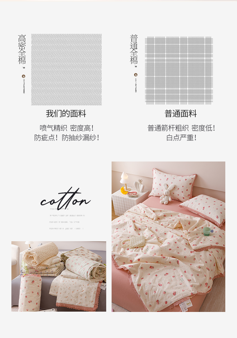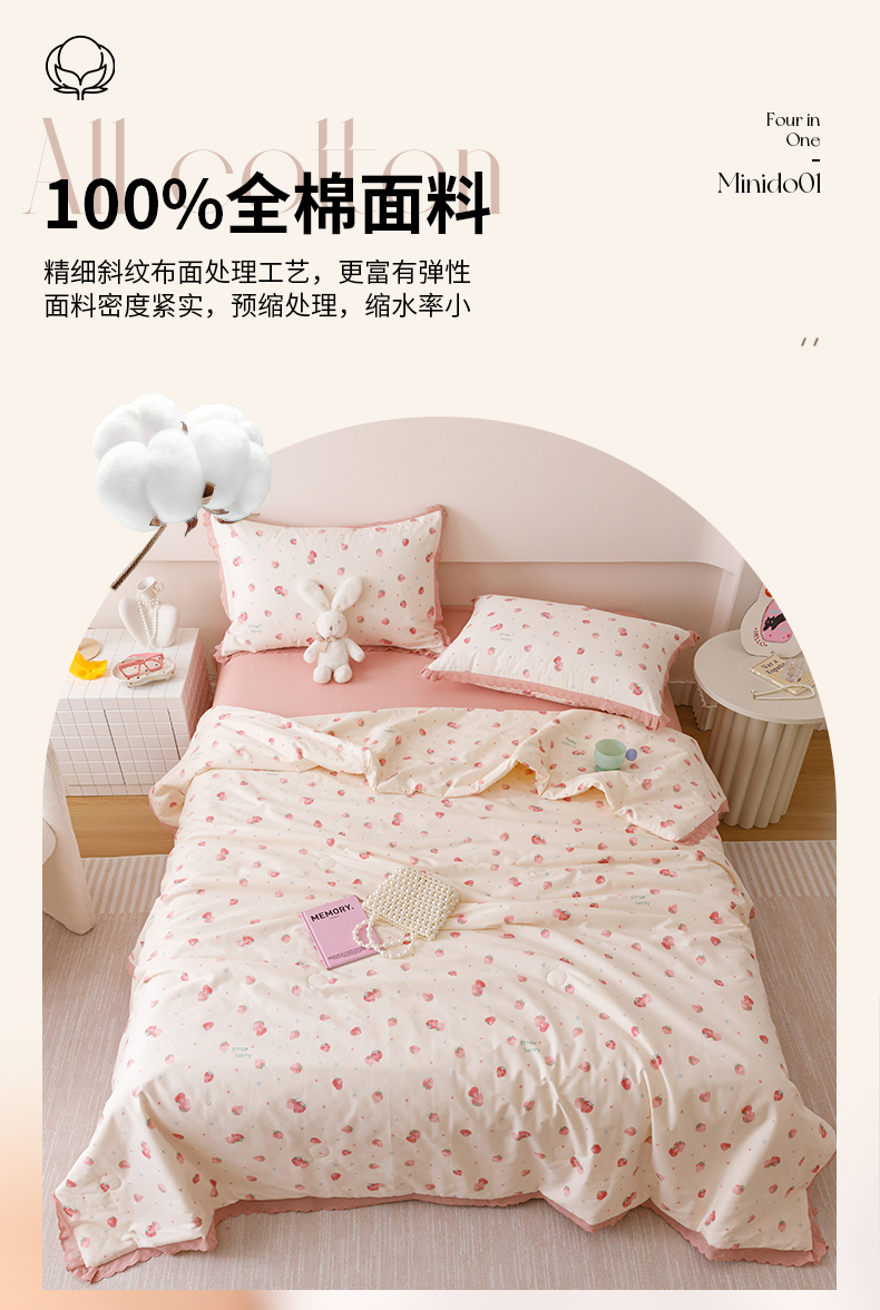 (总)优被业 2025新款全棉13372大豆夏被四件套小碎花系列,比菲兔,风姿,静笙,玲珑小兔,菱格,洛可可,梦露熊,妙影,葡萄仙子,奇迹世界,浅夏,少女心,守护甜心,素颜,田园沐歌,抱抱熊,妃子笑,复古花,露娜,梦田,蜜拉,茉莉花,挪威风情,如愿,山茶花,四季予你,仙草,小贝熊,樱桃季