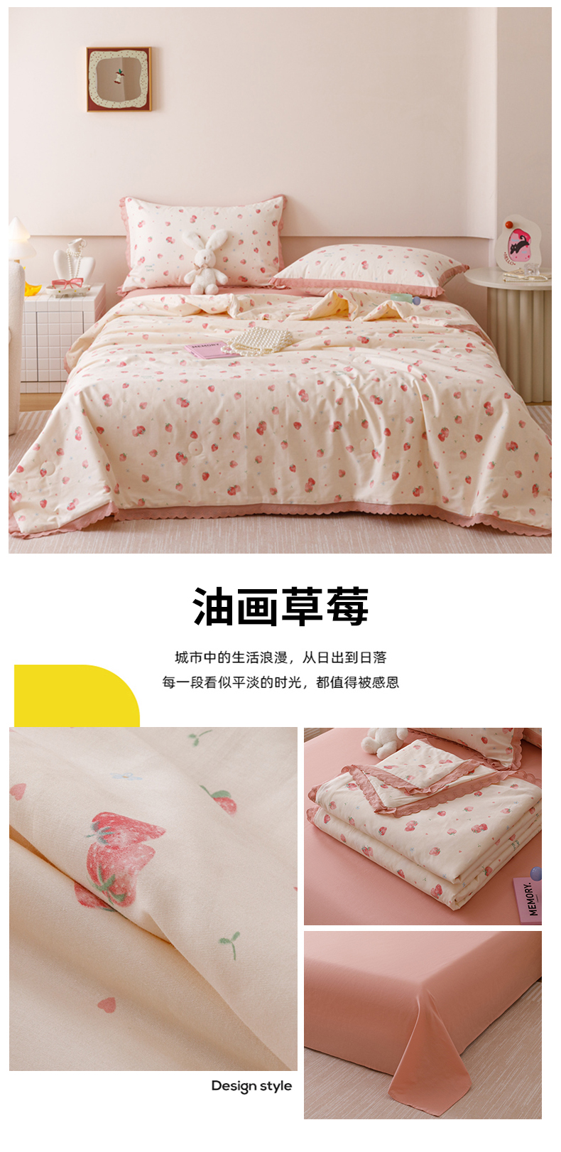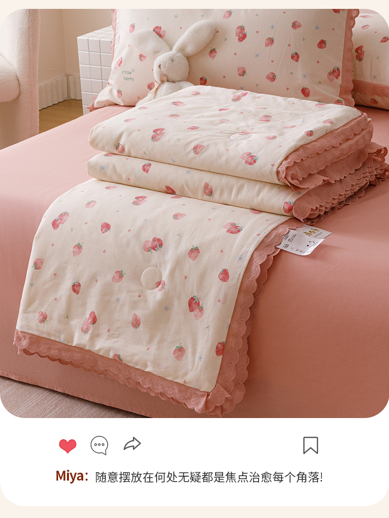 • 91家纺网 家纺一手货源 找家纺 优被业 2025新款全棉韩式小碎花花边夏被 油画草莓 91家纺网 家纺一手货源 找家纺 优被业 2025新款全棉韩式小碎花花边夏被 油画草莓