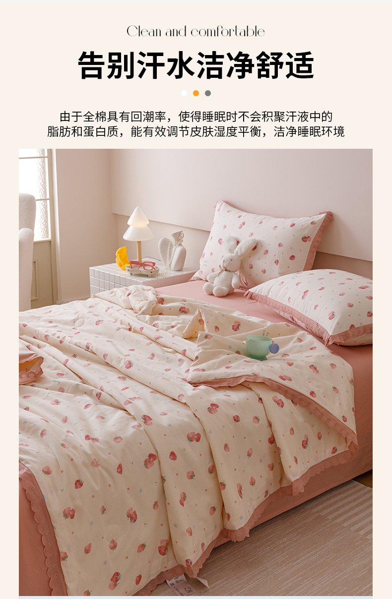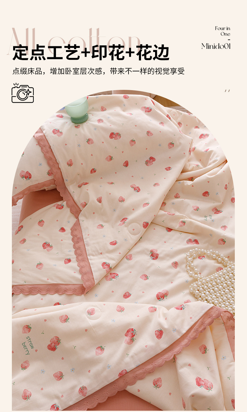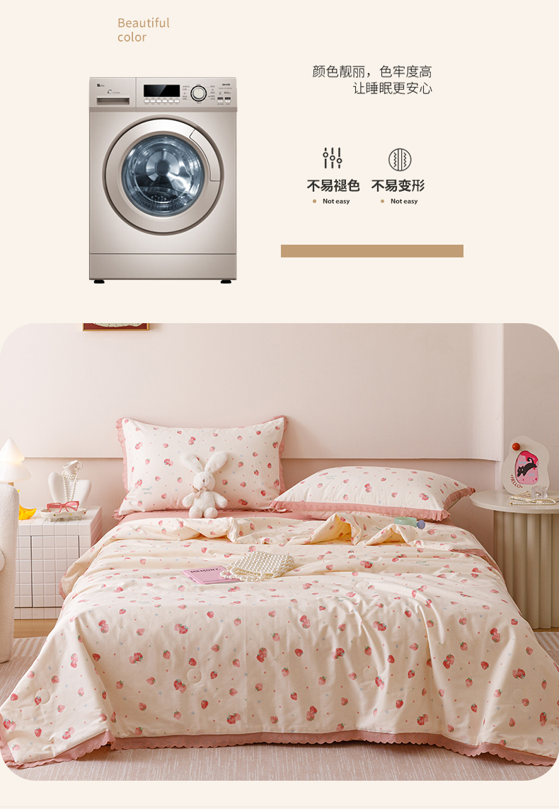 优被业 2025新款全棉韩式小碎花花边夏被 油画草莓