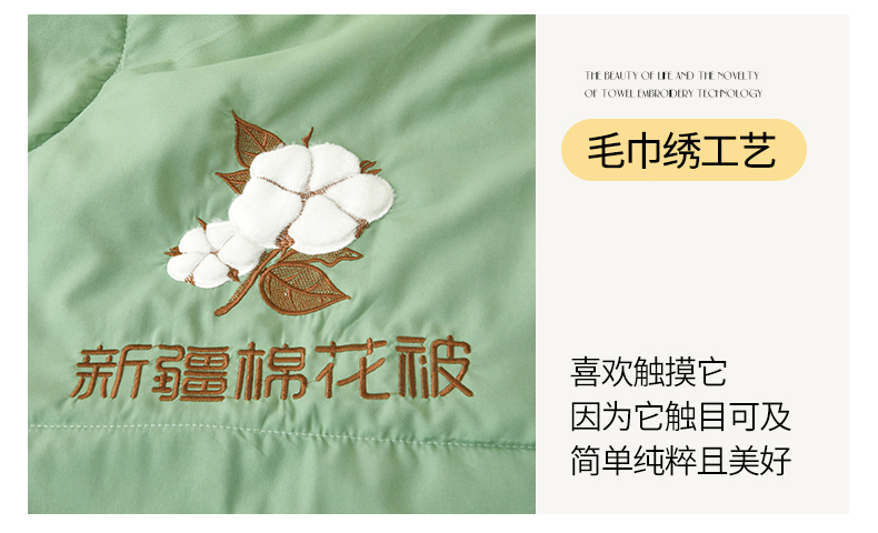 商品名称:新疆纯棉花被宽边绣花款全棉水洗棉夏凉被空调被薄款春秋被 云暖-青果绿