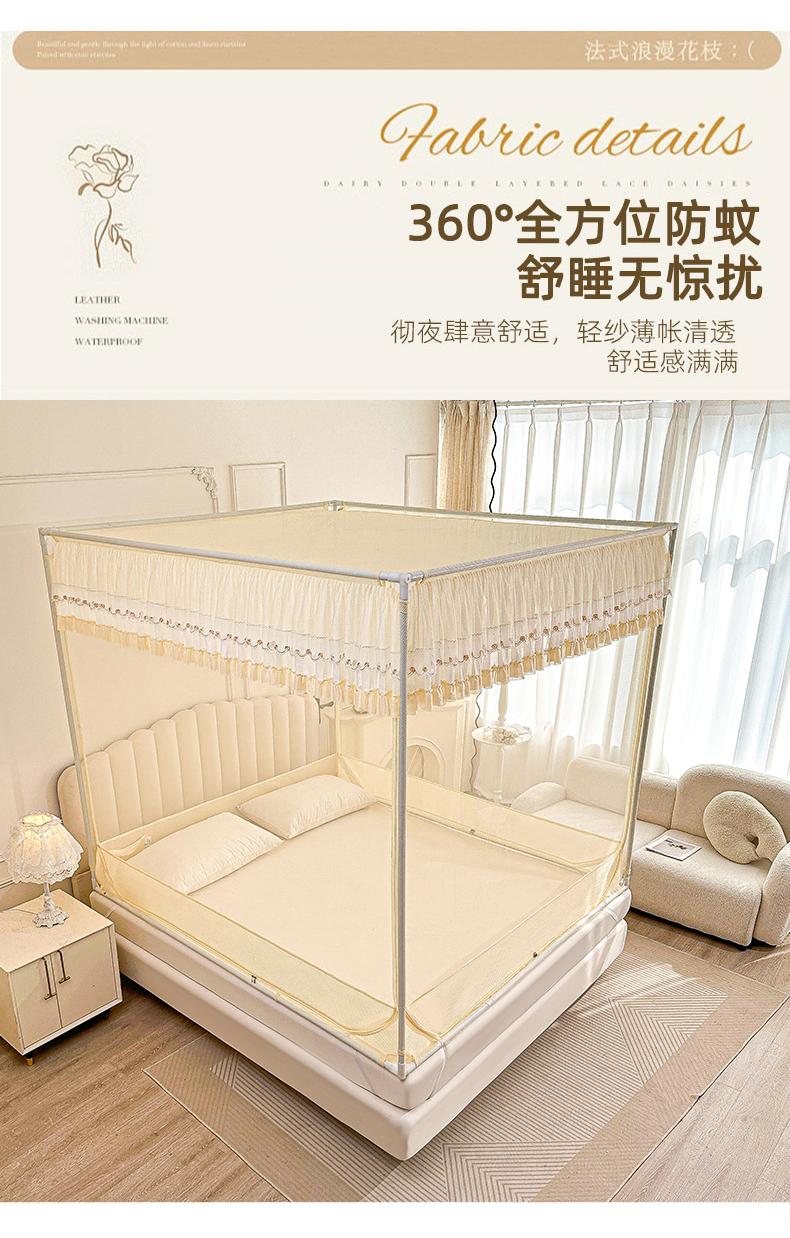 (总)梦尔佳蚊帐 2025新款双层花边床笠式三开门蚊帐-858怜香惜玉系列,优雅黄,富贵白,高级灰,温柔玉,清爽蓝