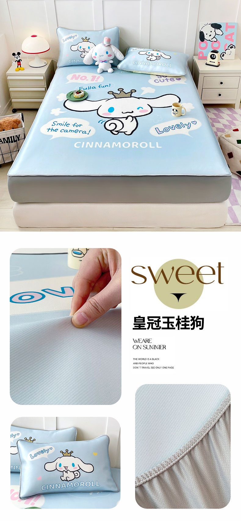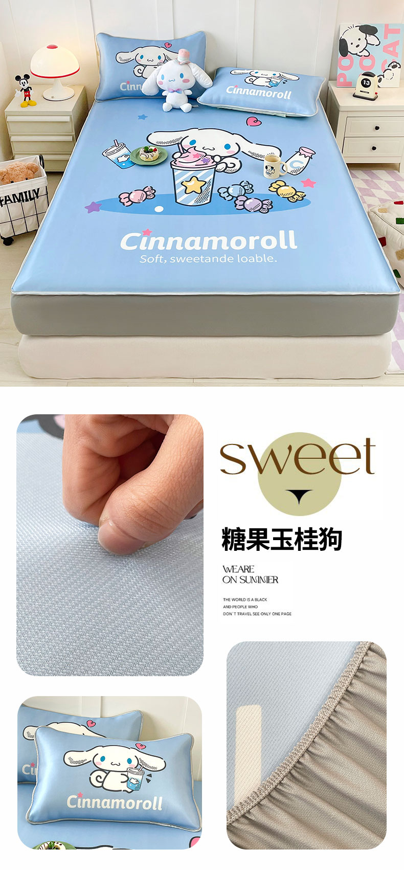 (总)米帛家纺 2024新款大版三丽鸥A类凉感丝乳胶凉席 床笠款,樱桃凯蒂猫,大脸凯蒂猫,好学库洛米,滑板帕恰狗,旅行玉桂狗,绿色库洛米,气球玉桂狗,巧克力库洛米,爆米花帕恰狗