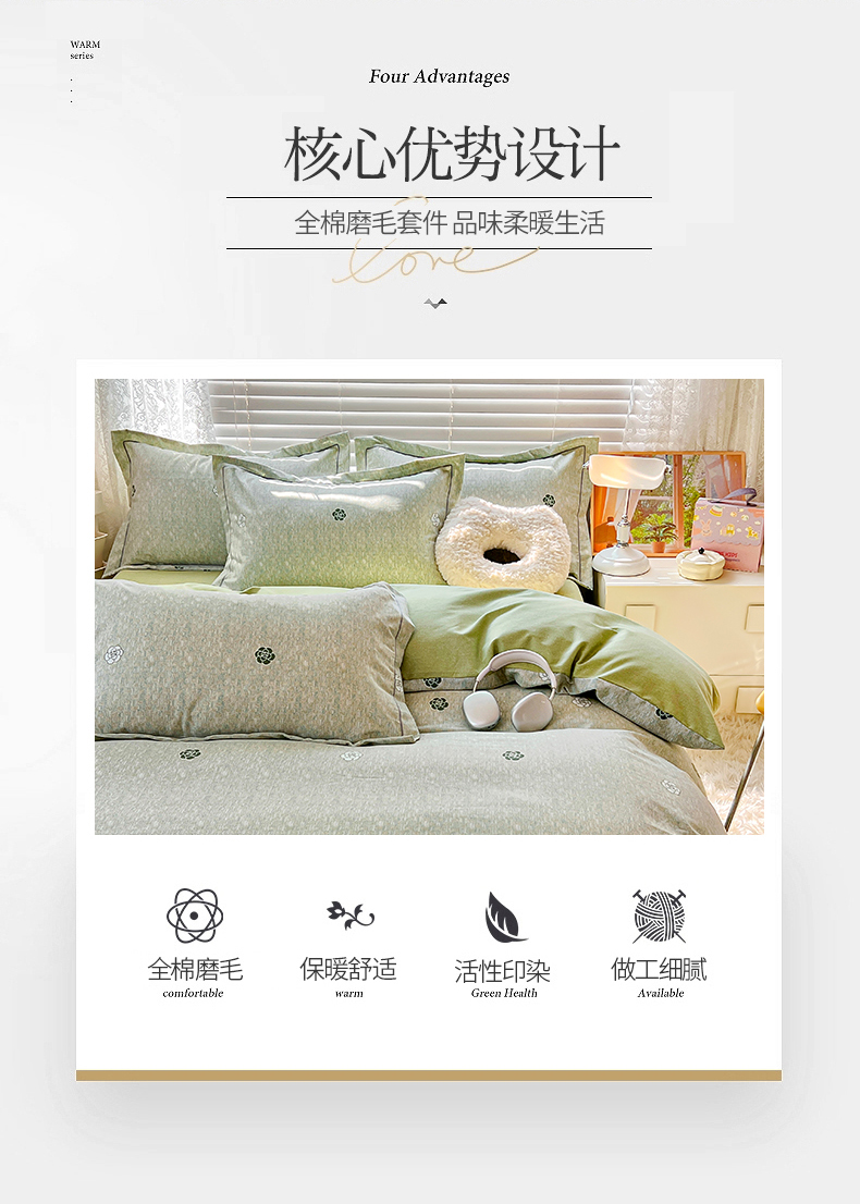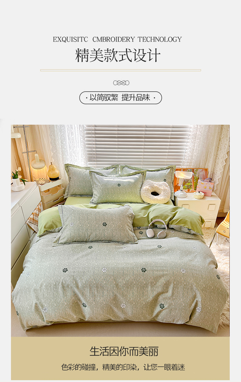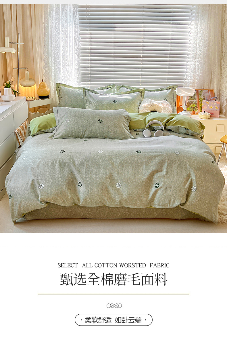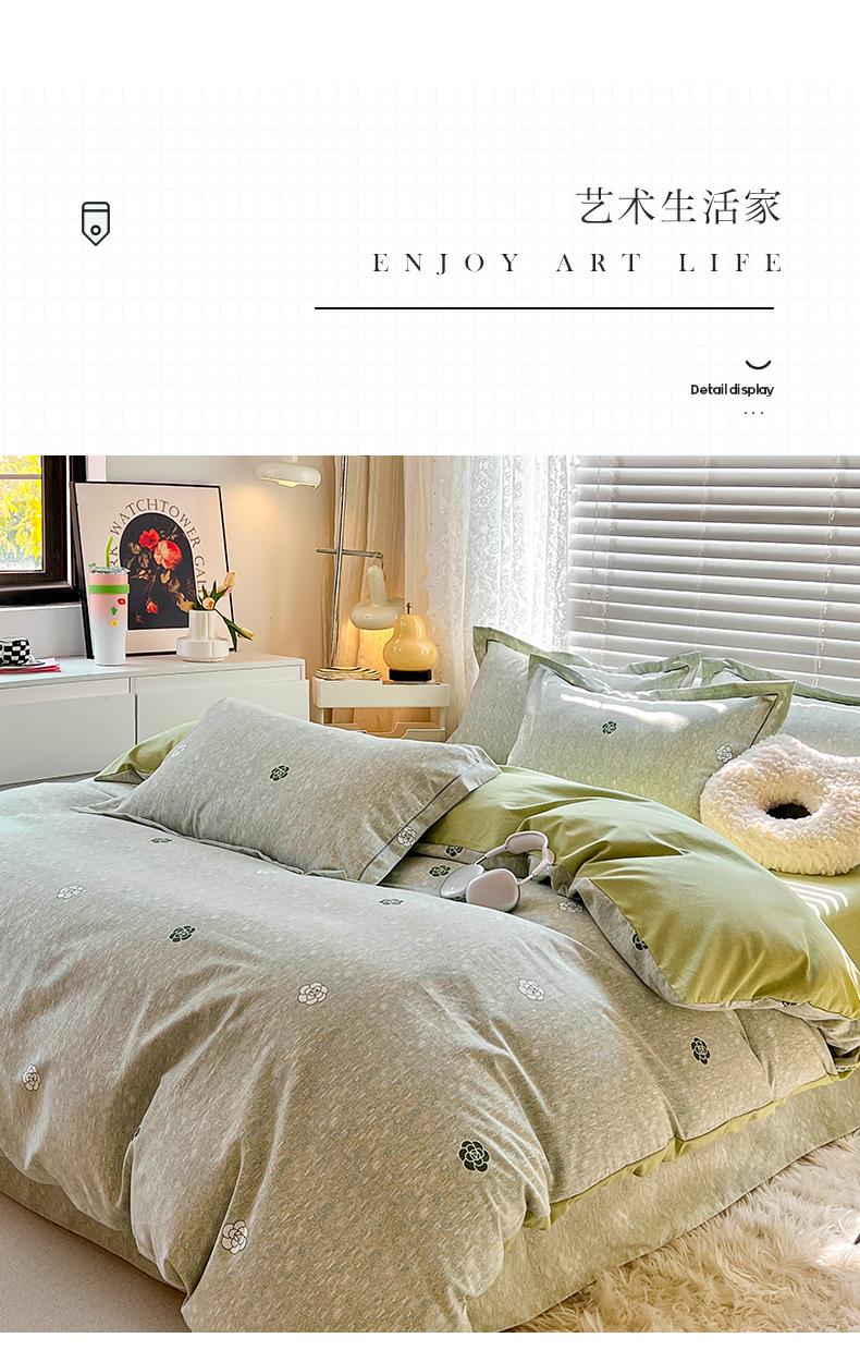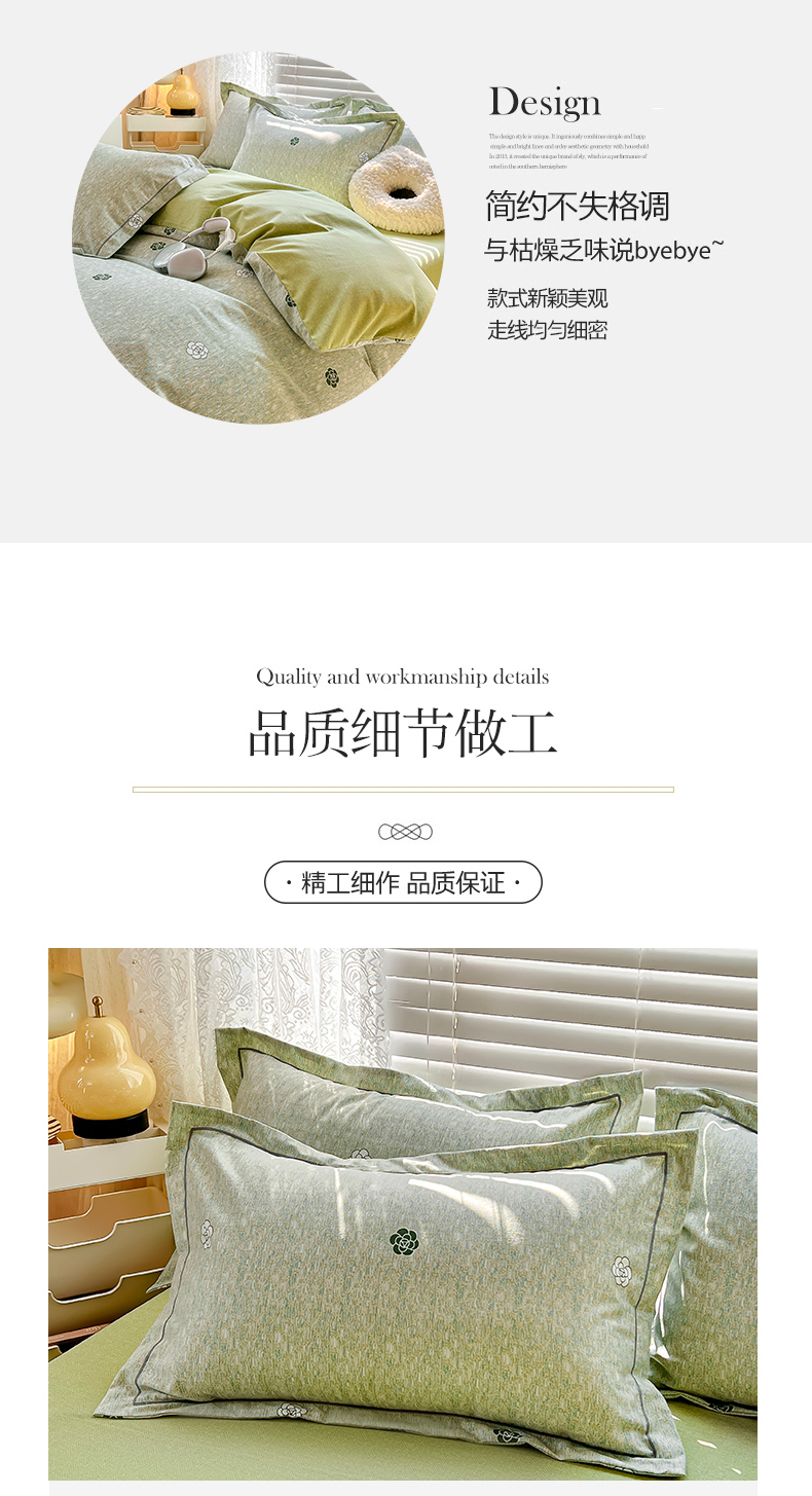 当前位置: 91家纺网 > 商品网购 > 床品套件 > 四件套 > 简约 2025新款全棉四件套活性生态磨毛四件套 山茶诗篇-绿