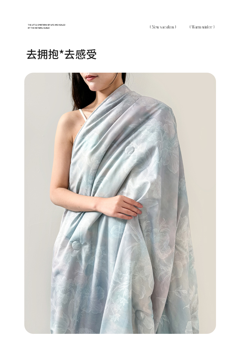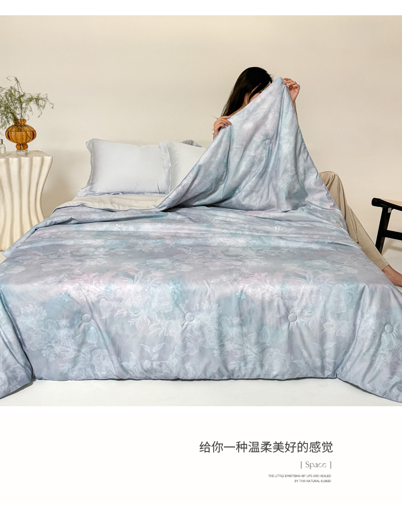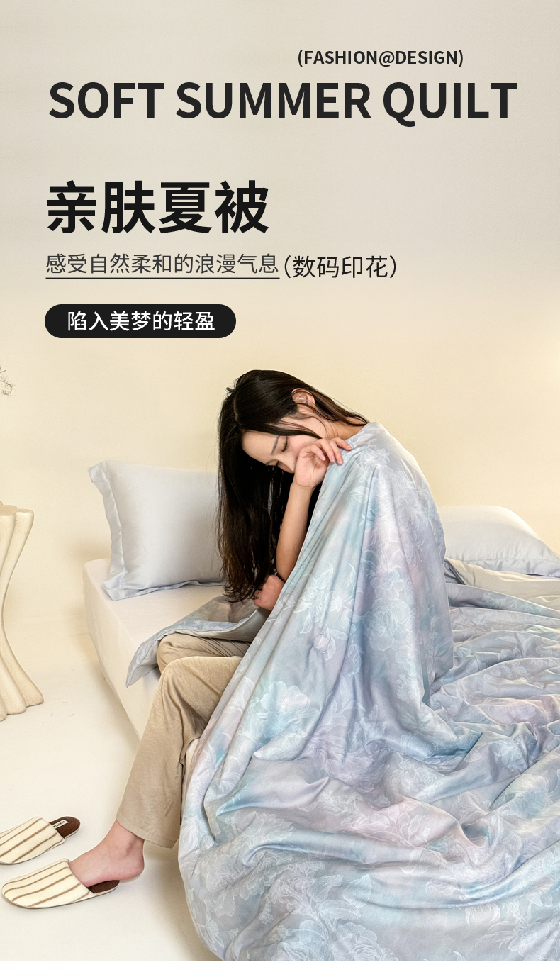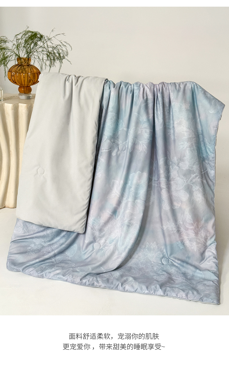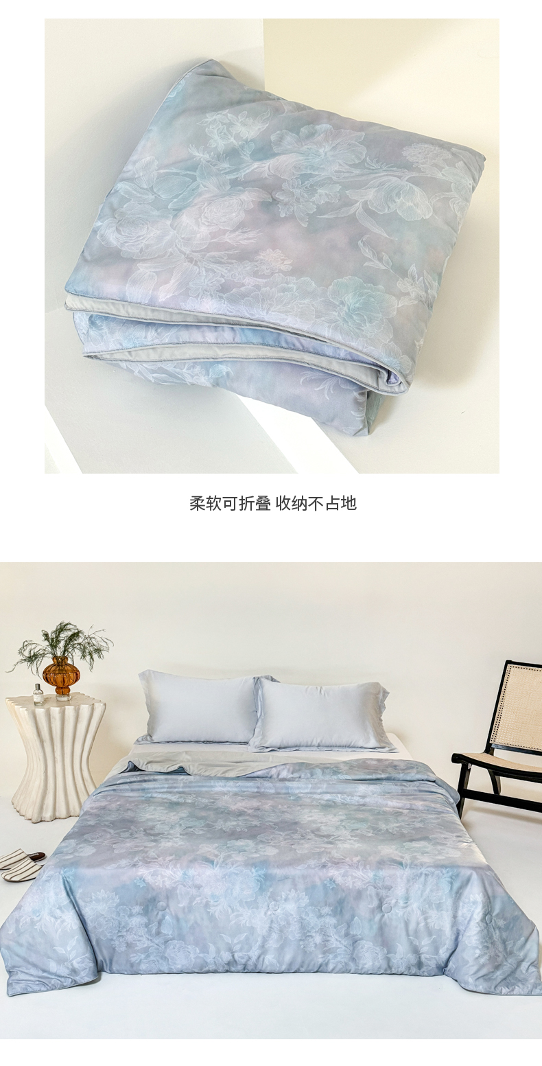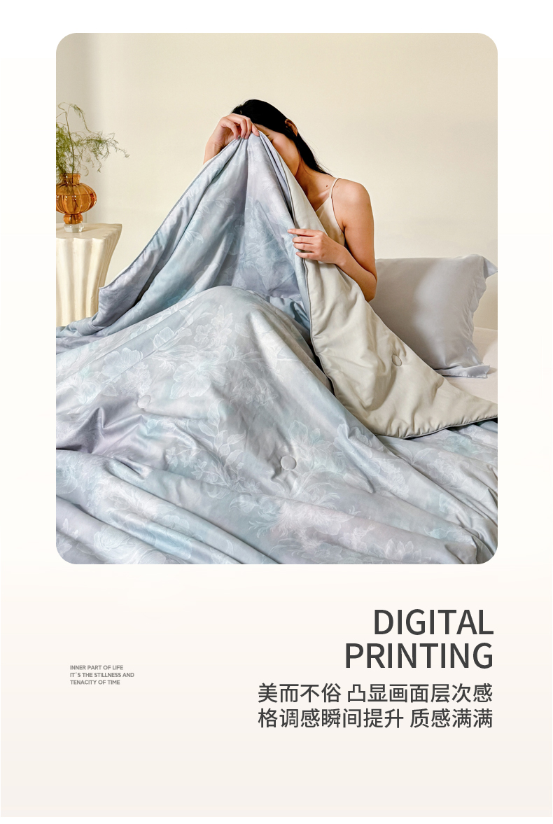 商品名称:2025新款仿色织提花数码印花轻奢风水洗棉夏被 隐纱-蓝