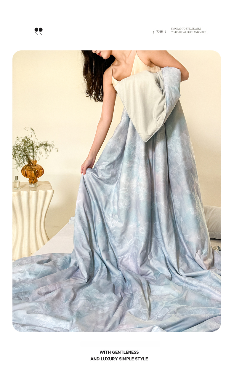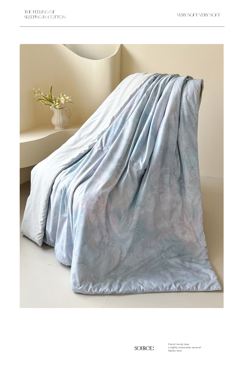 2025新款仿色织提花数码印花轻奢风水洗棉夏被 隐纱-蓝