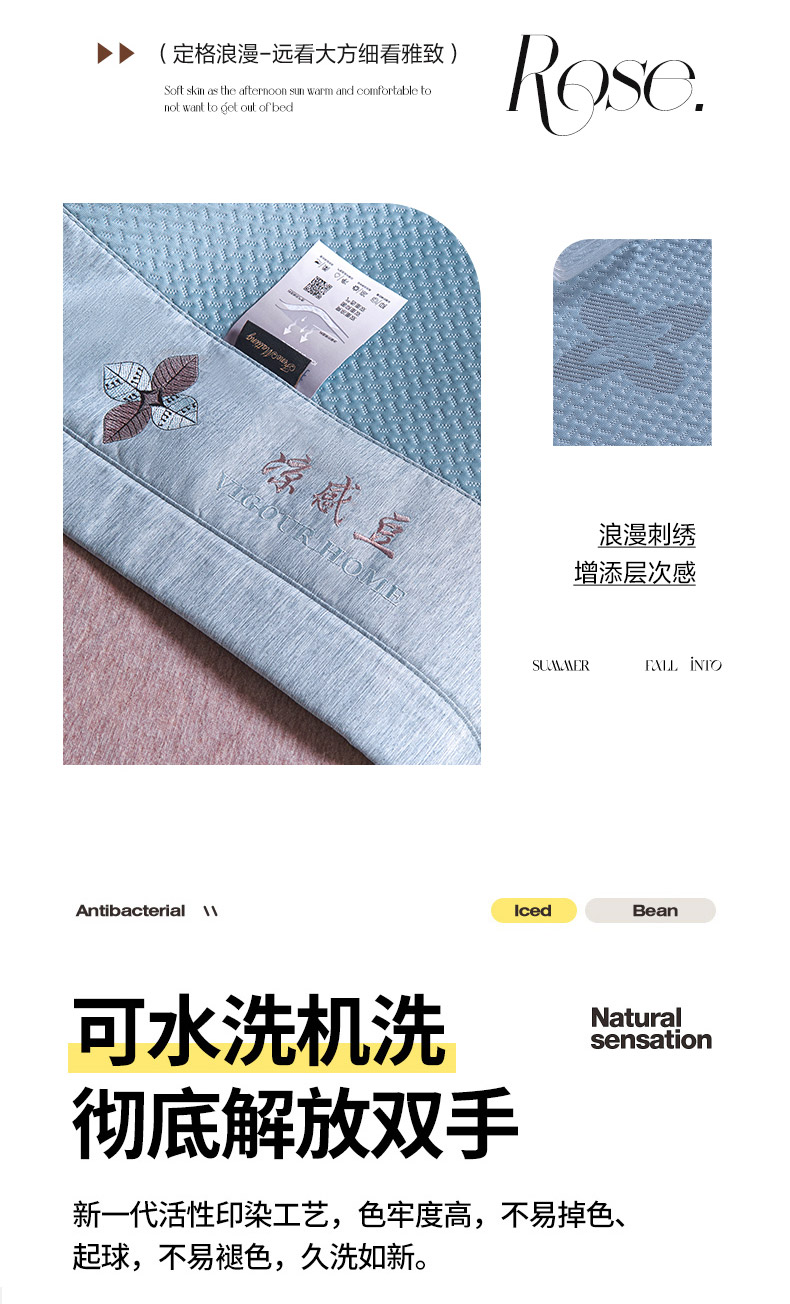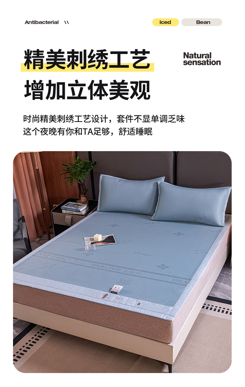 商品名称:梵克保罗 2025新款7A抗菌母婴级纯乙纶PE刺绣凉感丝豆豆席 叶子-蓝