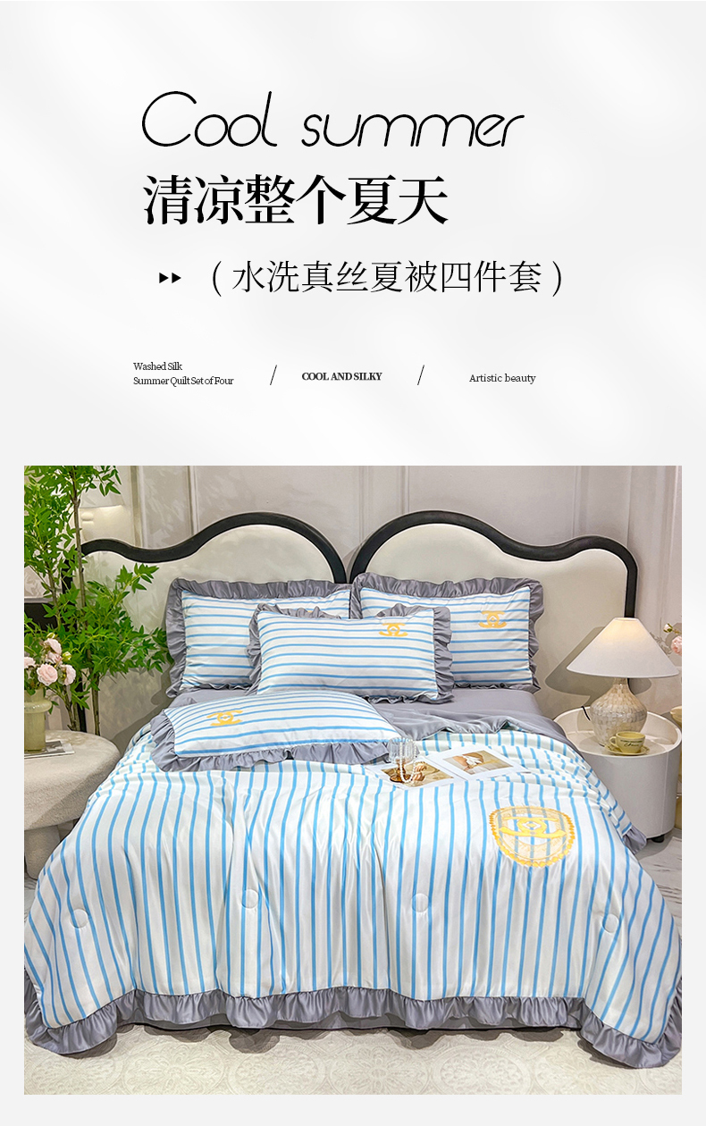 当前位置: 91家纺网 > 商品网购 > 床品套件 > 四件套 > 夏被四件套 > 经年 2025新款水洗真丝韩版夏被浅夏系列 浅夏-蓝灰