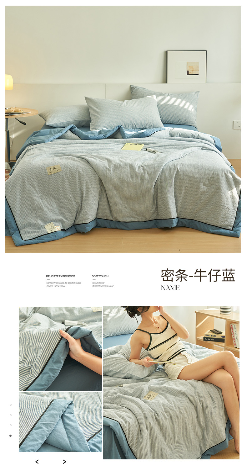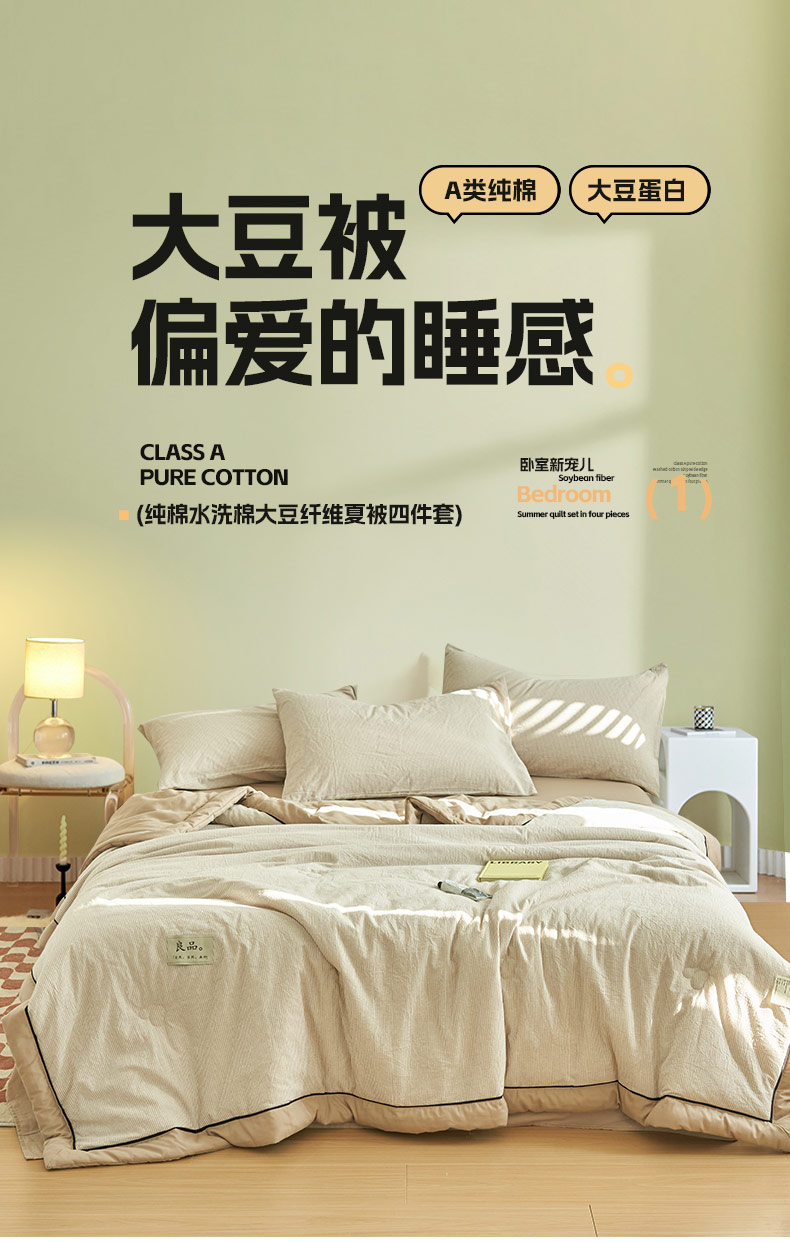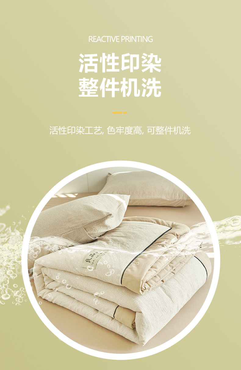 • 91家纺网 家纺一手货源 找家纺 寐绸家纺 2025新款纯棉水洗棉细条宽边大豆纤维夏被四件套 密条-浅驼