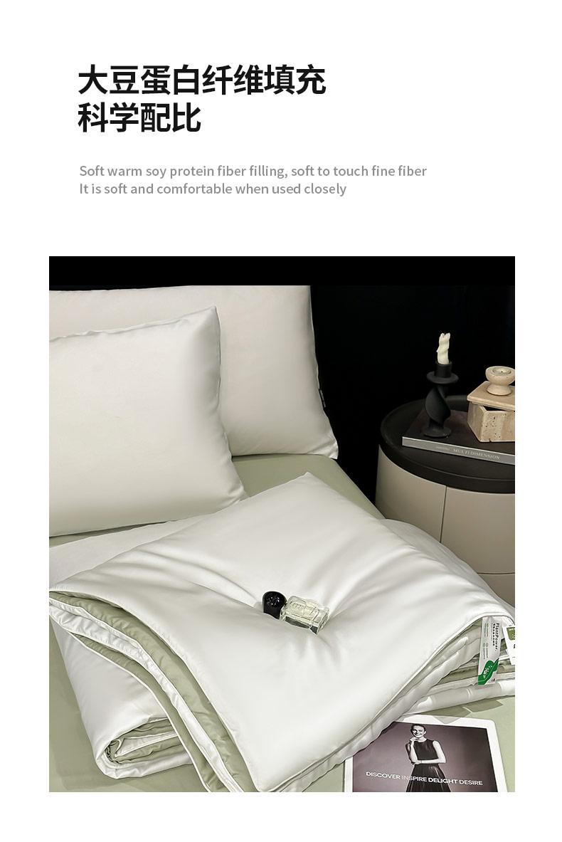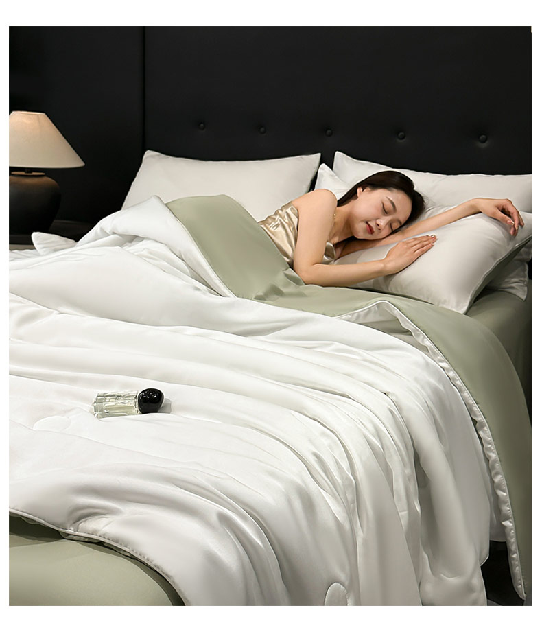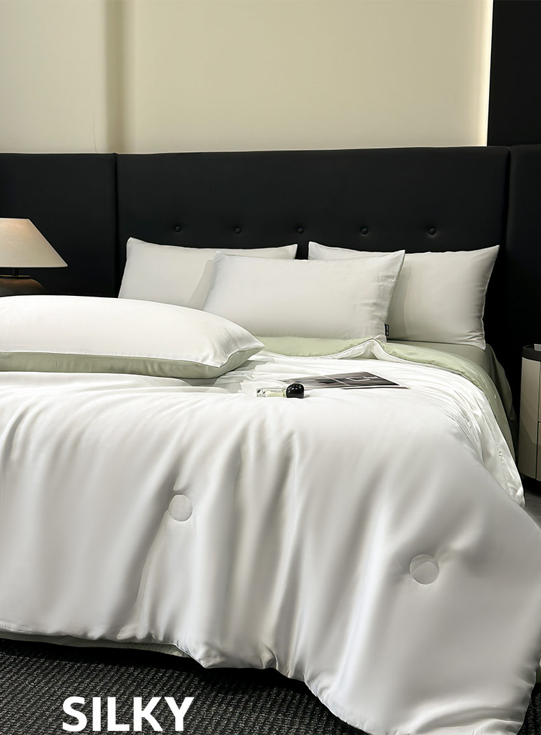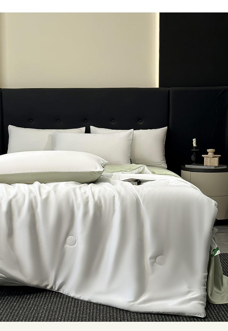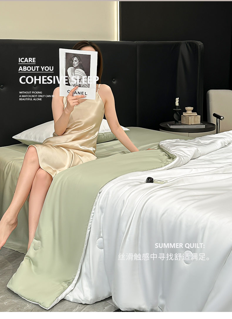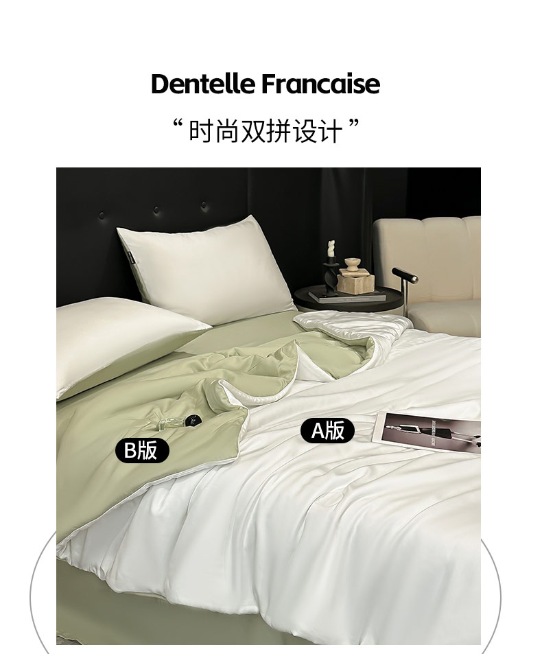 • 91家纺网 家纺一手货源 找家纺 寐绸家纺 2025新款100%莱赛尔50天丝简约拼色大豆夏被四件套 天丝-珍珠白