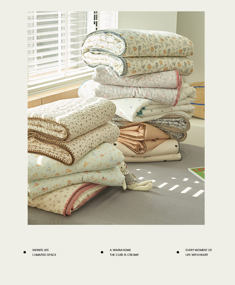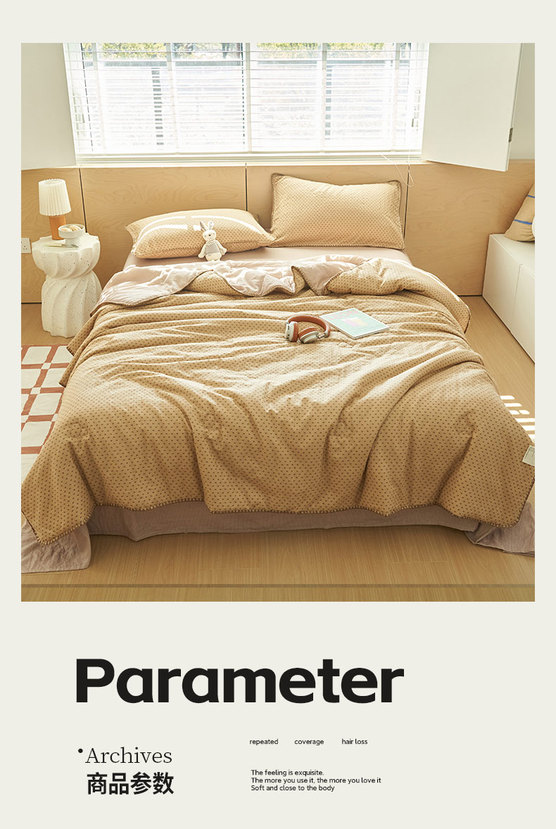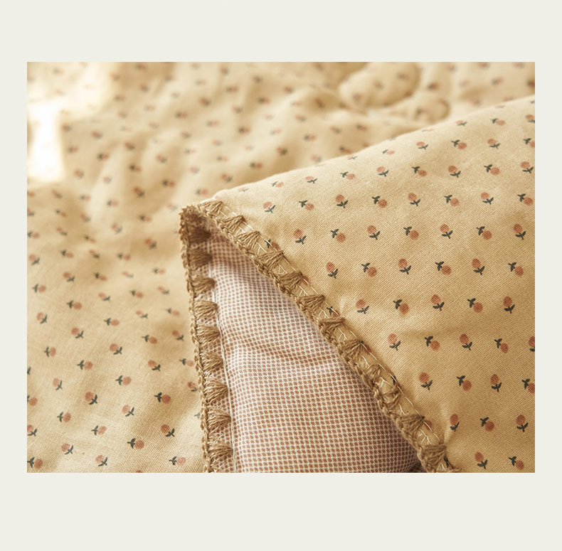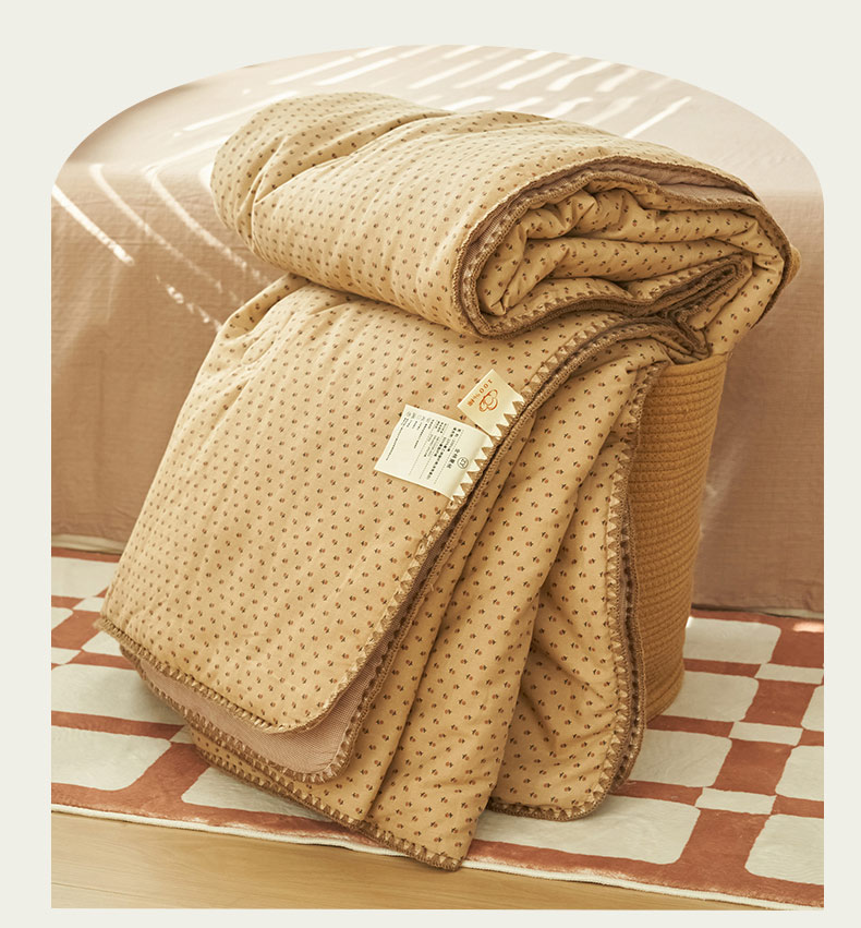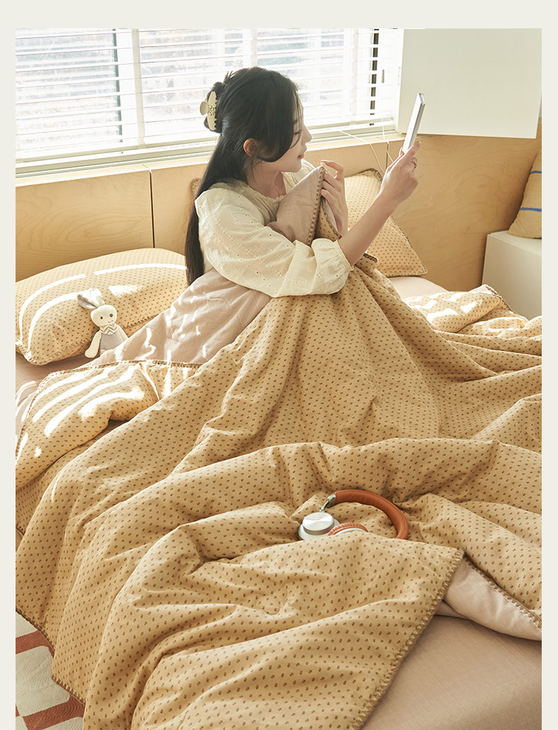 • 91家纺网 家纺一手货源 找家纺 寐绸家纺 2025新款纯棉双层纱印花大豆纤维夏被四件套 双层纱-小红花