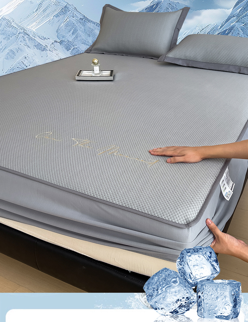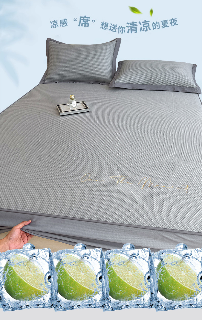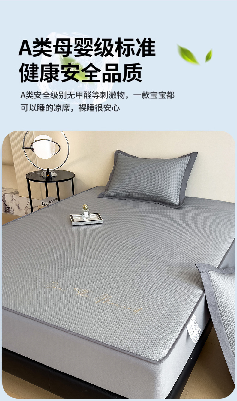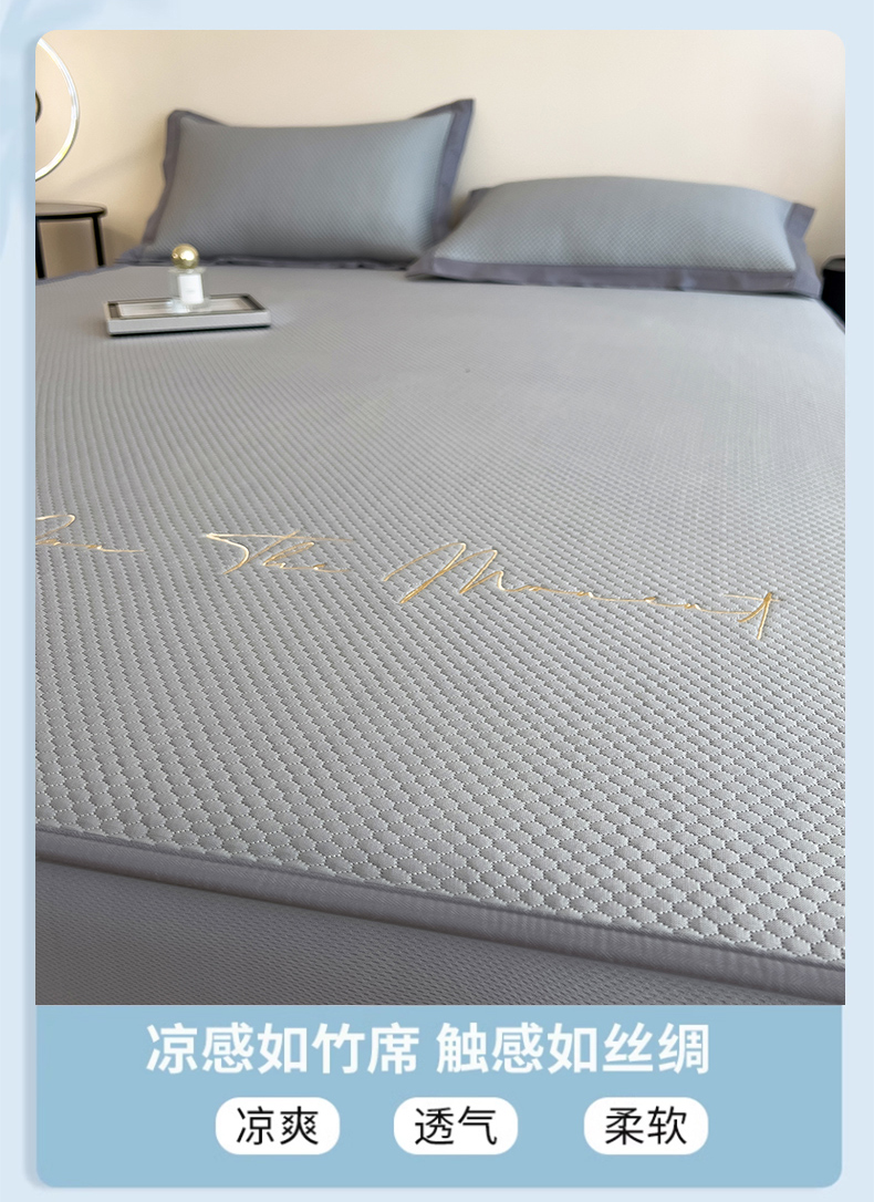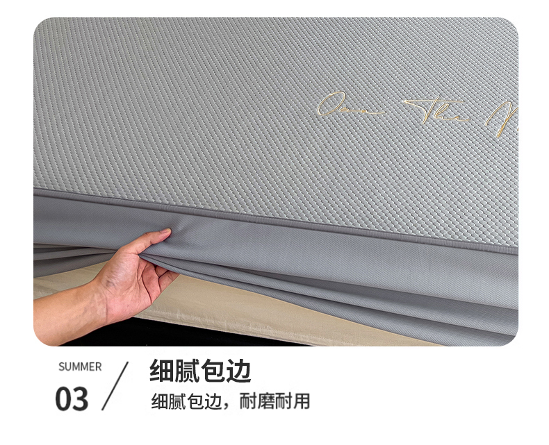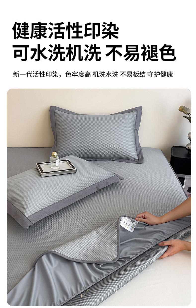 • 91家纺网 家纺一手货源 找家纺 孩子王家纺 2025新款冰豆豆华夫格绣花床单床笠-万丽和系列 万丽和-气质灰床笠