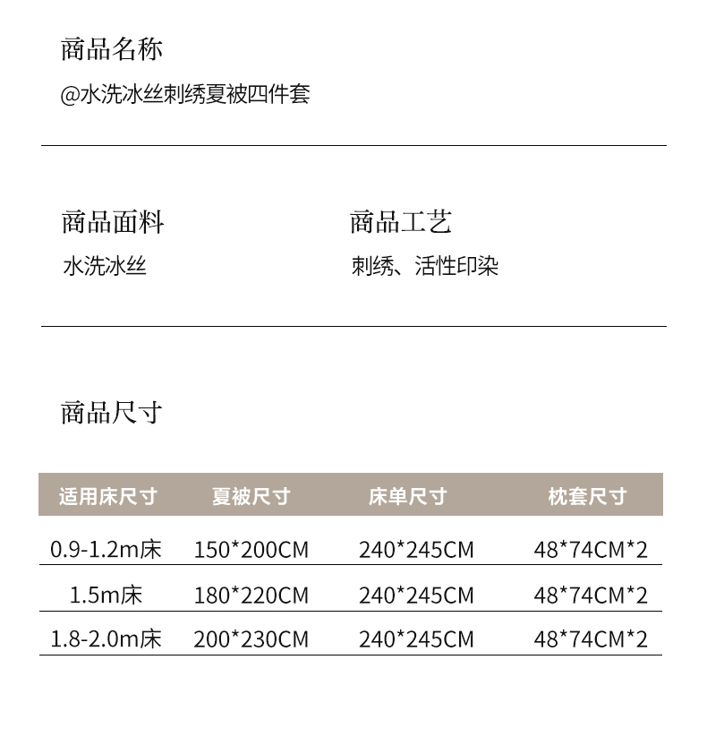 商品名称:(总)如一 2026新款麻绳系列水洗冰丝刺绣夏被四件套