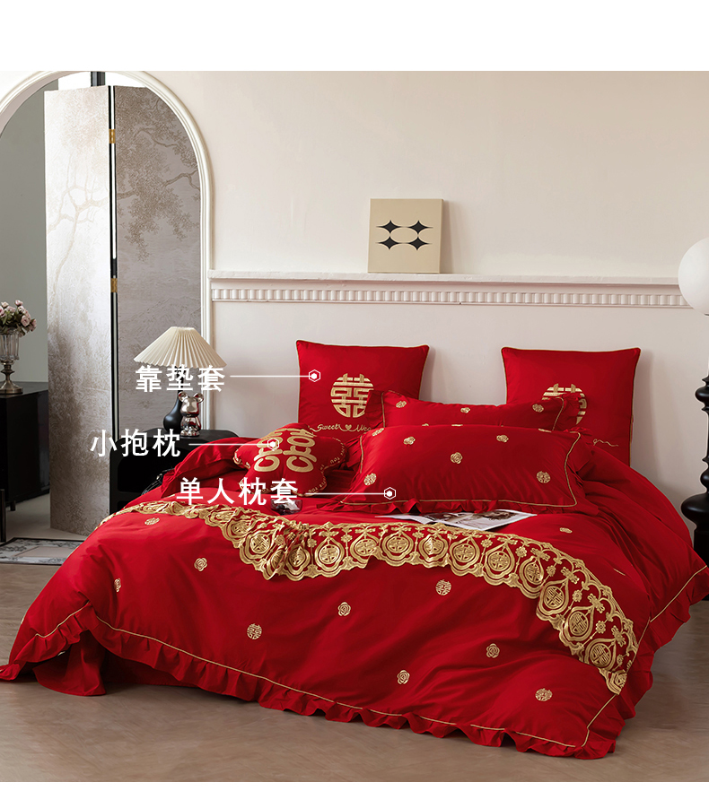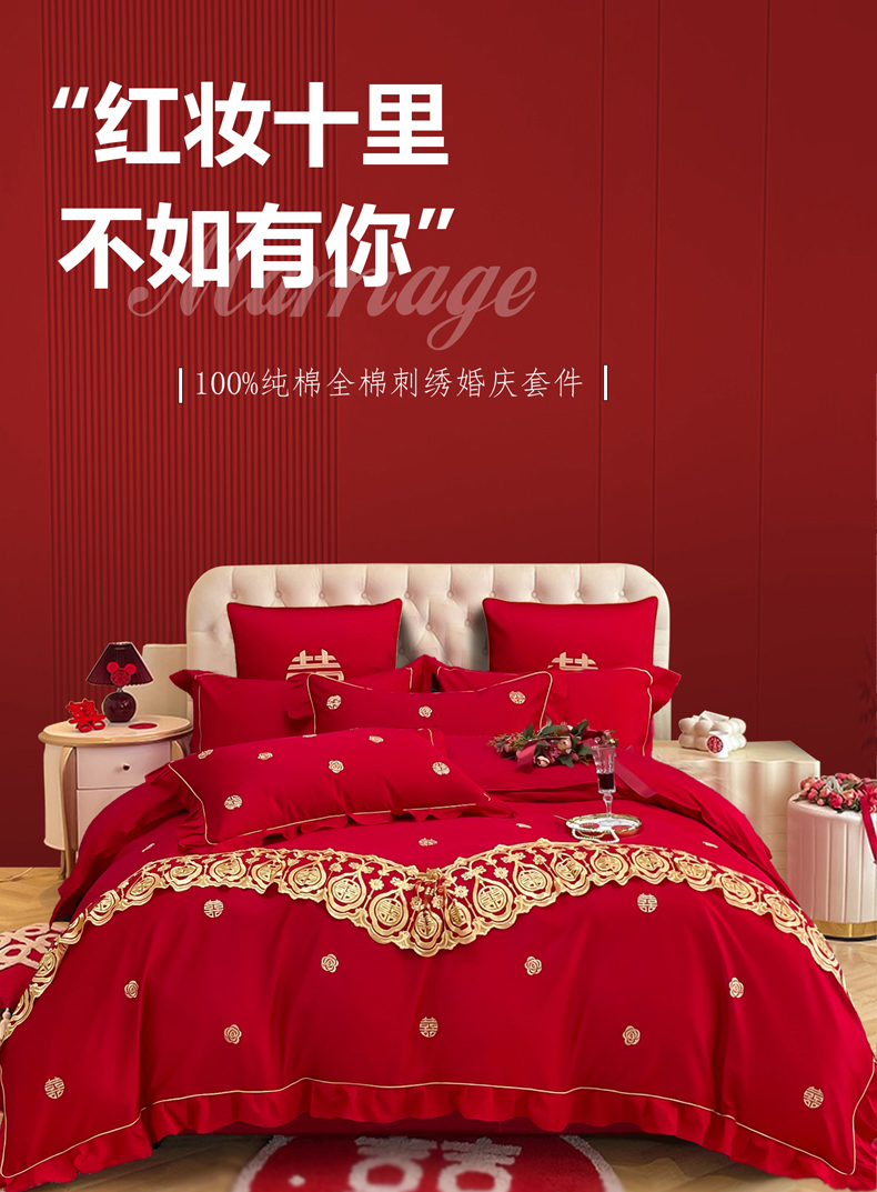 (总)甜咪咪婚庆 2025新款50支长绒棉全棉婚庆床单床盖四件套多件套刺绣工艺,洛可可,爱恋小熊,爱意久久,多子多福,花田喜事,节节高升,克拉恋人,浪漫情怀,怦然心动红,怦然心动玉,甜心玫瑰,温莎公主,伊甸园,醉红妆