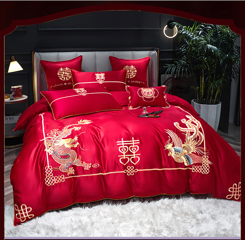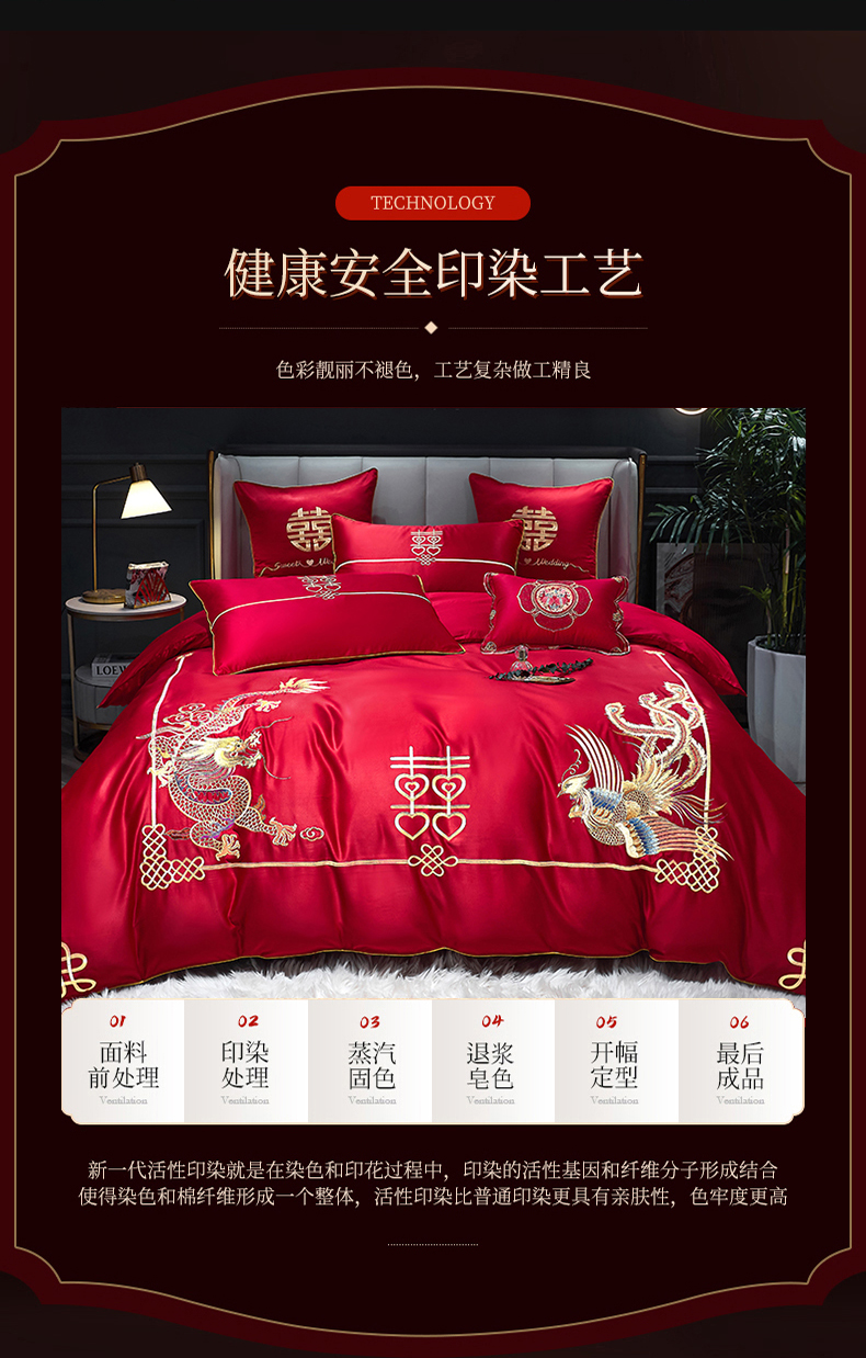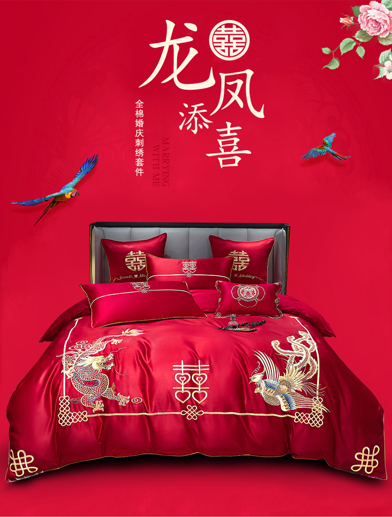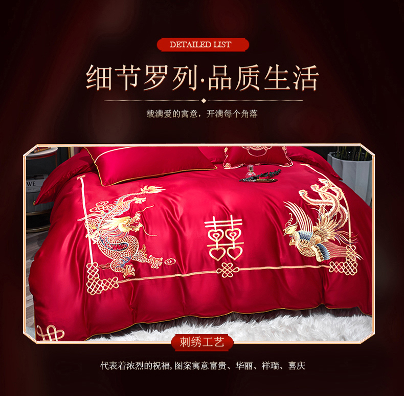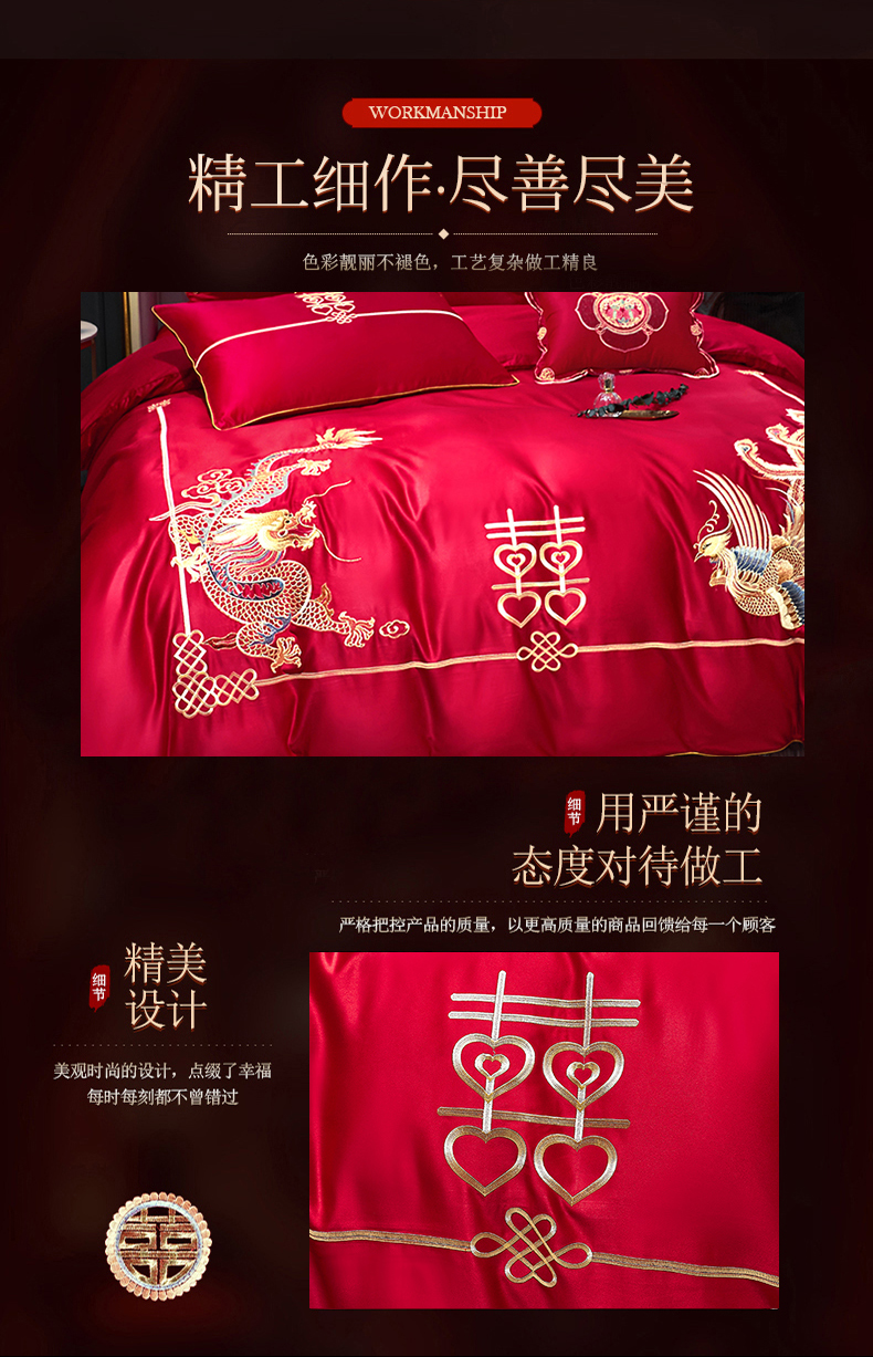 商品名称:甜咪咪婚庆 2025新款纯棉全棉面料刺绣结婚 婚庆 四件套 多件套 小红书推荐热款 龙凤添喜