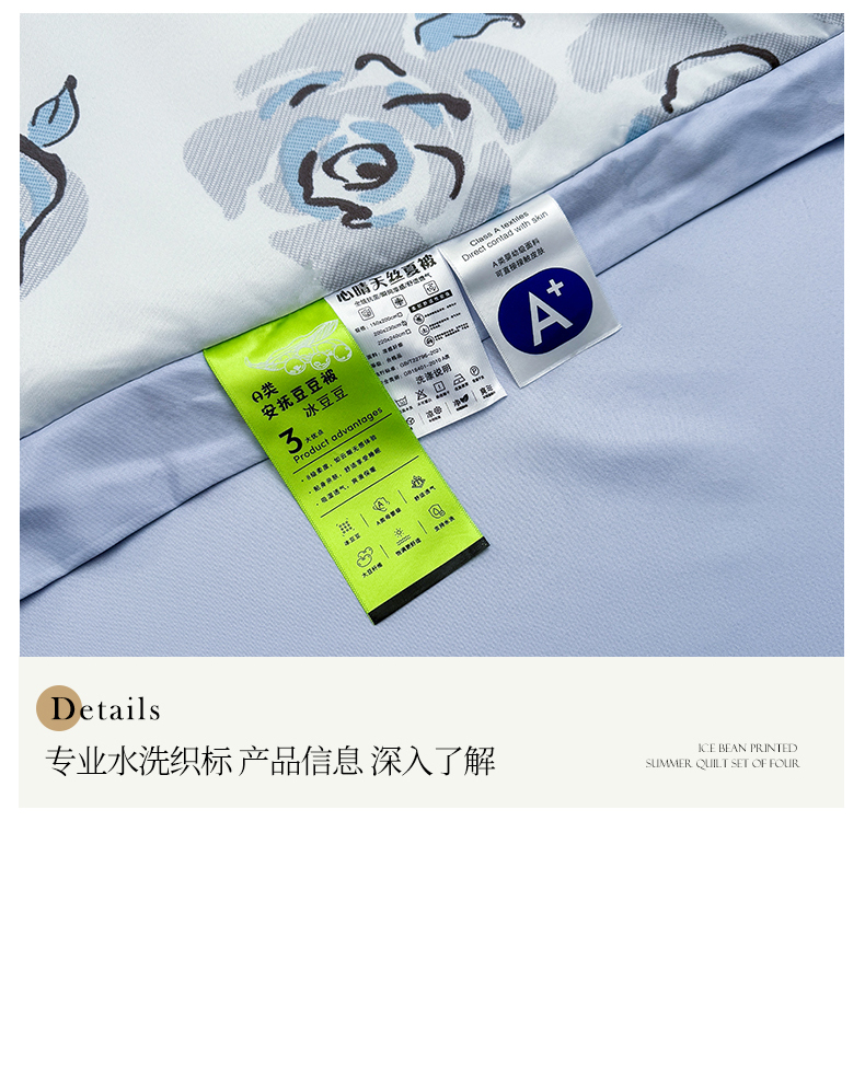 商品名称:(总)满羽家纺 2025热款冰丝绸冰豆豆被夏被四件套凉感空调被(踩棉工艺)(吊边床单)-印花