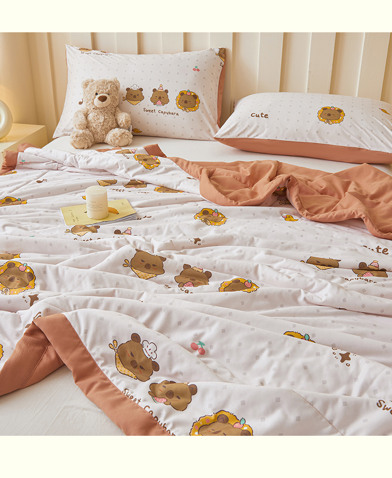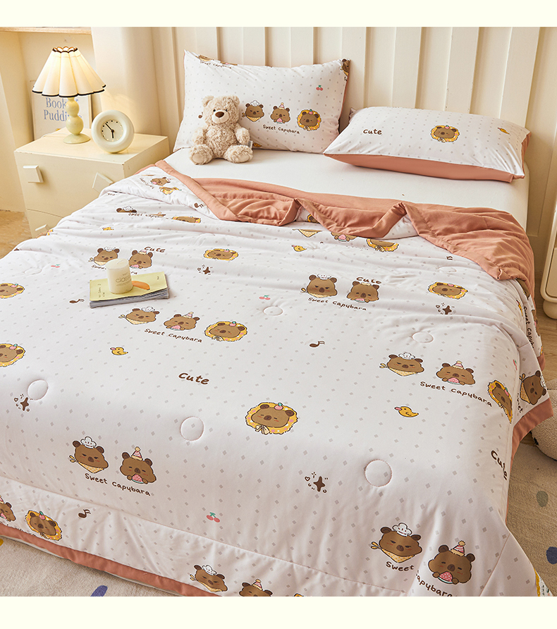 欢乐季 2025新款A类抗菌双层纱大豆夏凉被空调被夏被四件套 卡皮巴拉