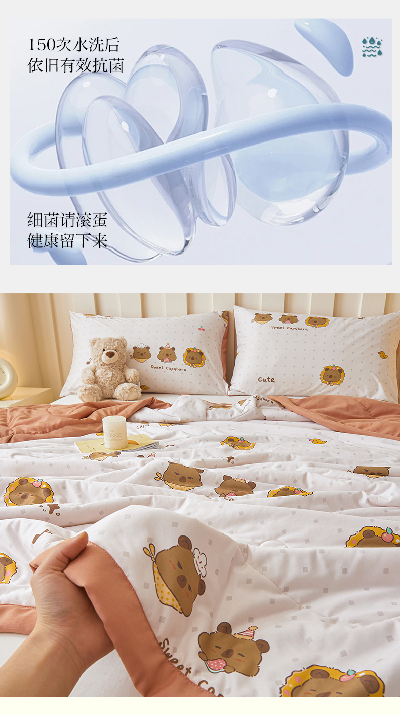 • 91家纺网 家纺一手货源 找家纺 欢乐季  2025新款A类抗菌双层纱大豆夏凉被空调被夏被四件套 卡皮巴拉