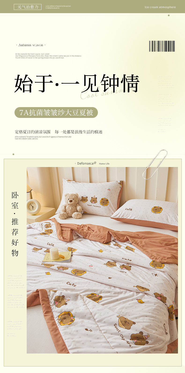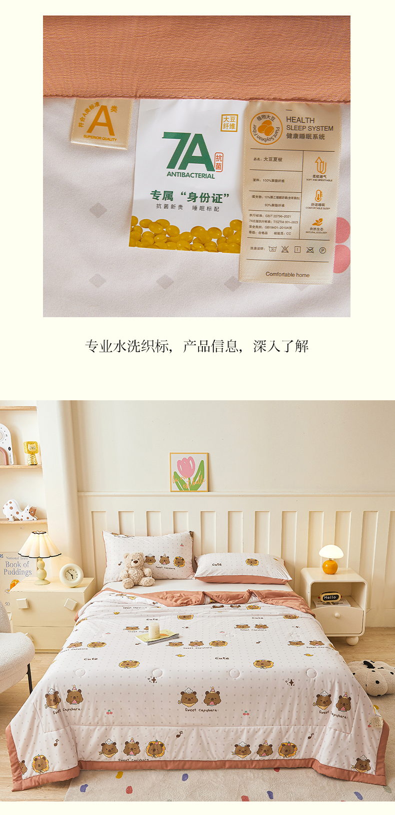 当前位置: 91家纺网 > 商品网购 > 被子 > 夏被 > 欢乐季 2025新款A类抗菌双层纱大豆夏凉被空调被夏被四件套 卡皮巴拉