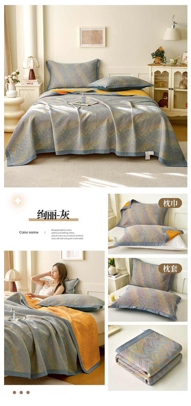 当前位置: 91家纺网 > 商品网购 > 床上用品 > 床盖 > 棠薇家纺 2025新款全棉彩纱双层纱夏被三层纱多功能毛巾被纱布毯细纱床盖 绚丽-灰