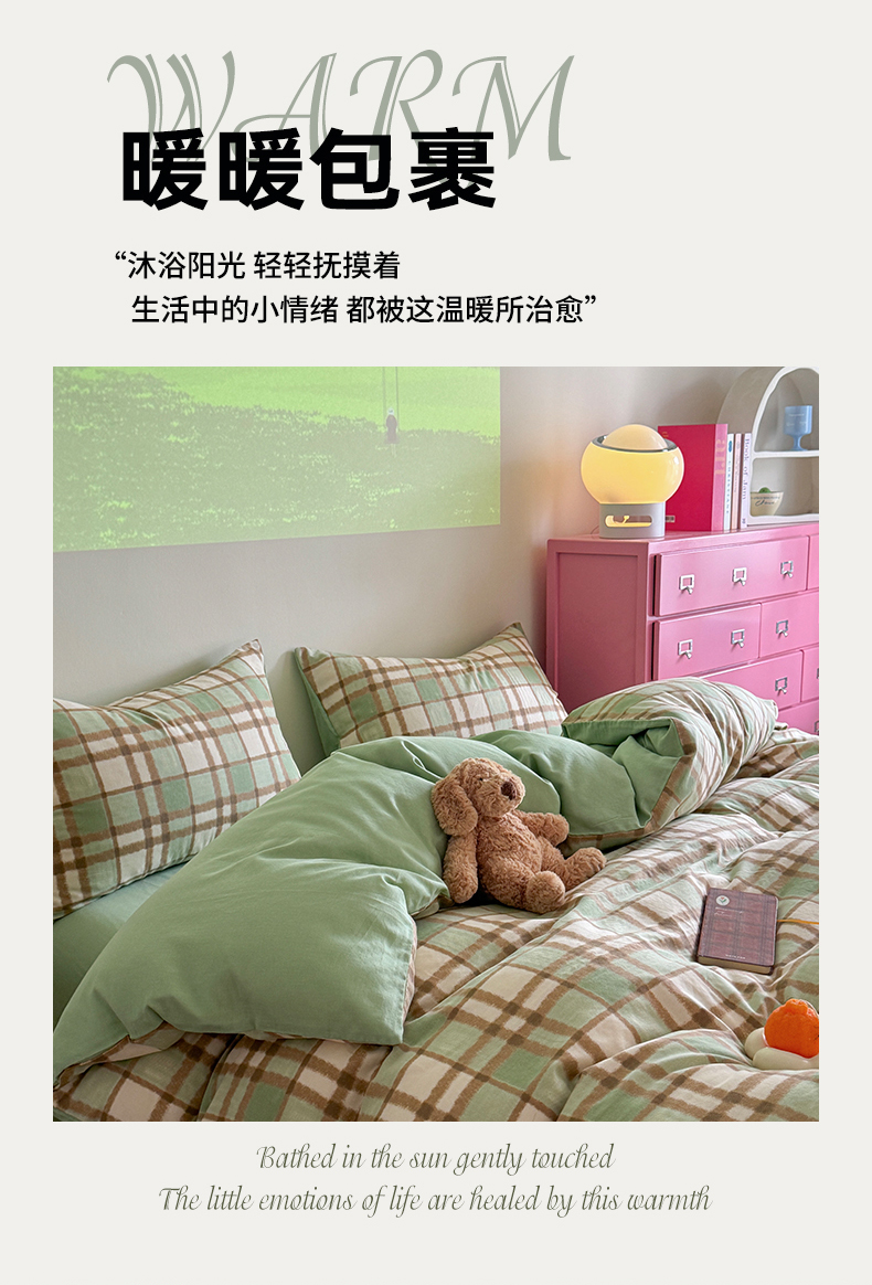 (总)时年家纺 2025新款全棉纯棉生态磨毛嵌绳款系列四件套,绿光森林,星光彩虹,芝士蘑菇