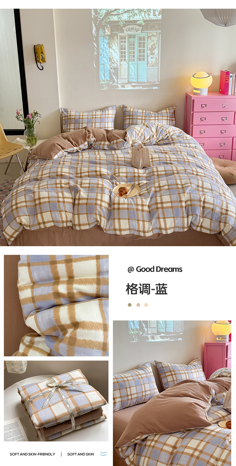 商品名称:2025新款全棉有氧双层纱四件套-简约系列 格调-蓝
