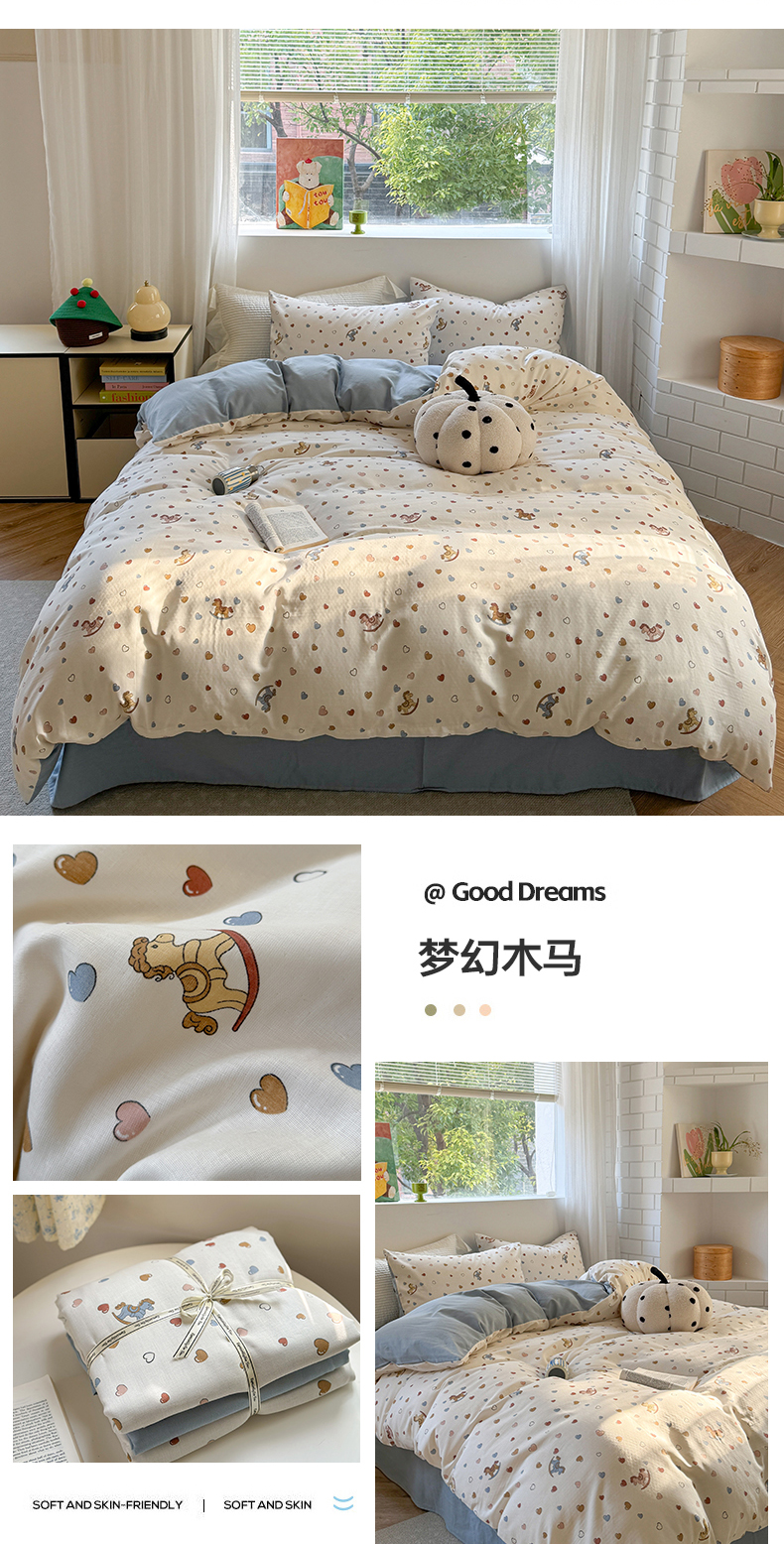 商品名称:2025新款全棉有氧双层纱四件套-卡通系列 跳跳熊