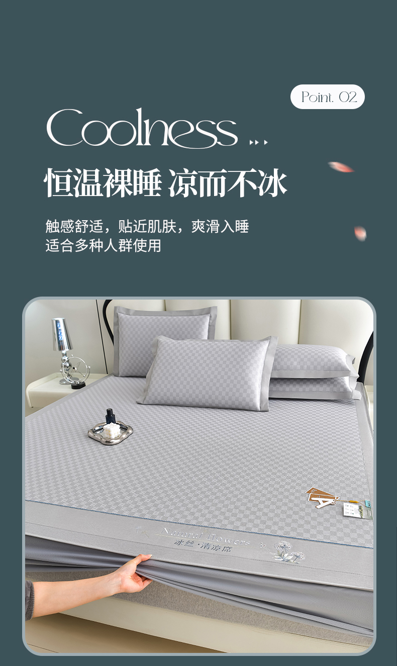 商品名称:小牛席业 2025新款棋盘格-冰丝清凉席系列(床笠款)凉席藤席冰藤席冰丝席竹席空调席草席乳胶席豆豆席三件套 灰色