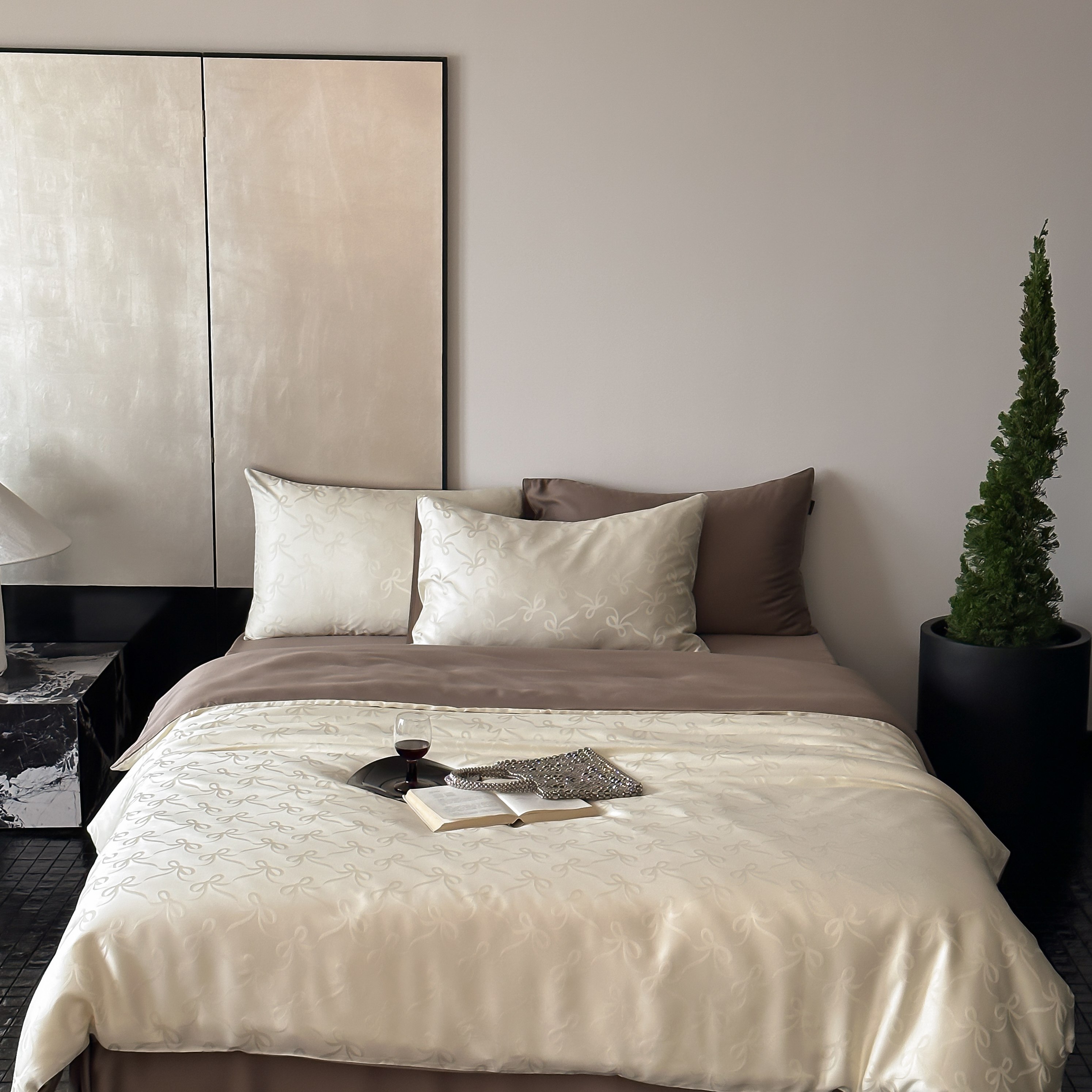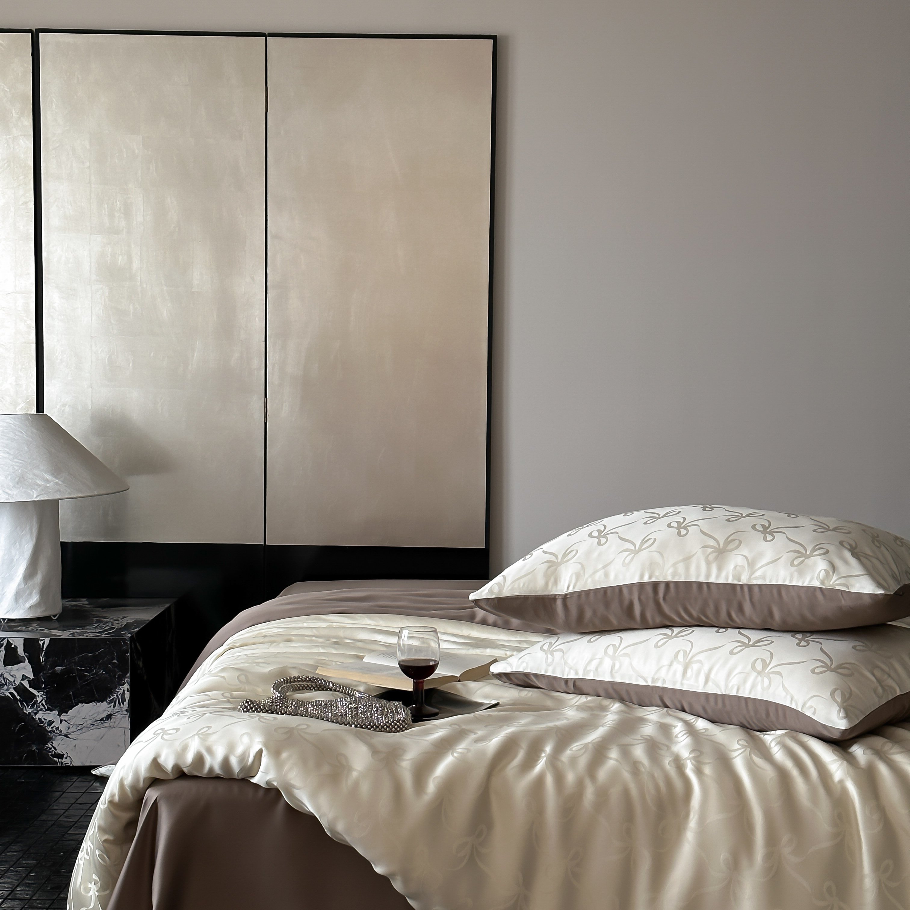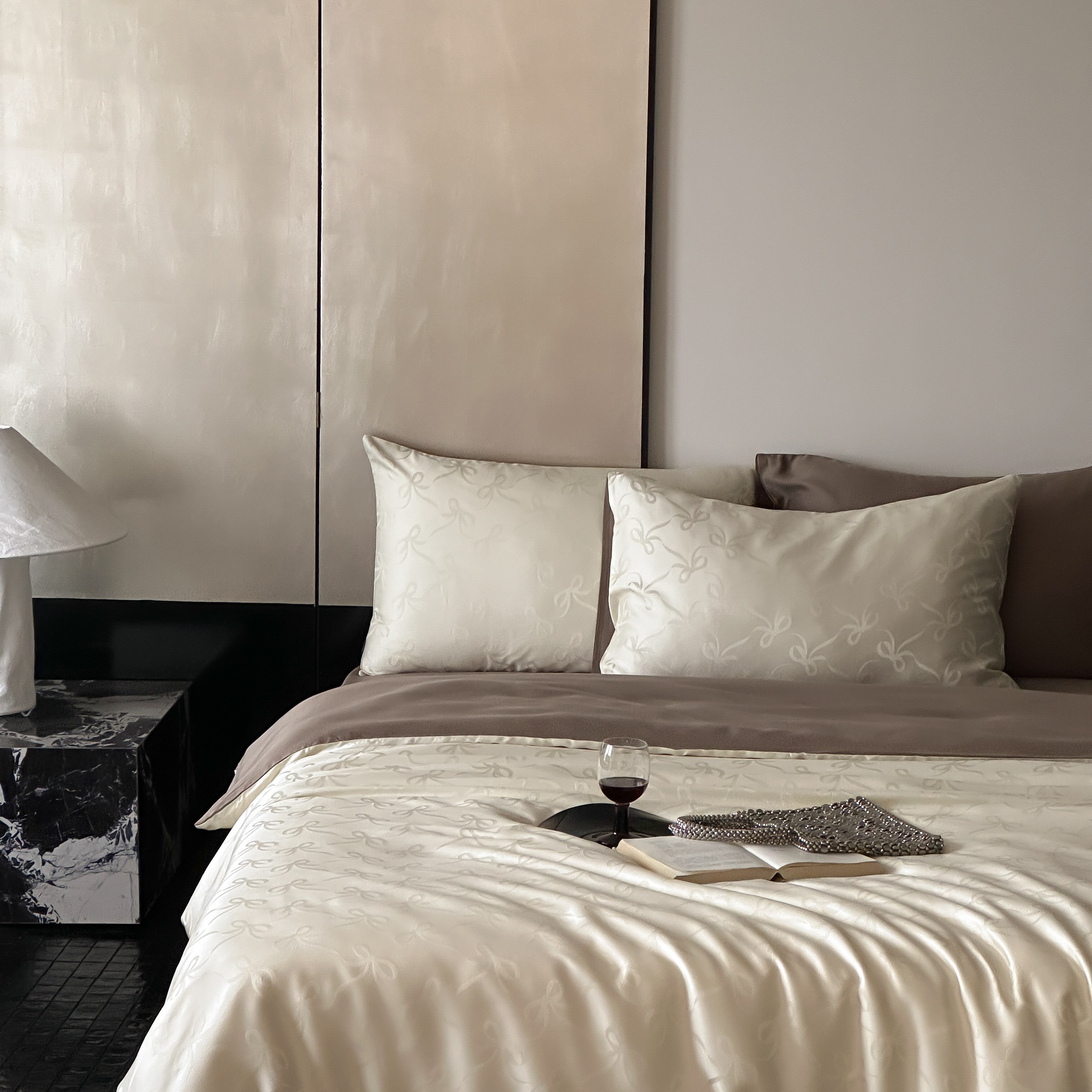 当前位置: 91家纺网 > 商品网购 > 床品套件 > 四件套 > 玉宇阁家居 2025新款60S色织天丝大提花四件套-半岛茶 半岛茶-松栗+奶油色