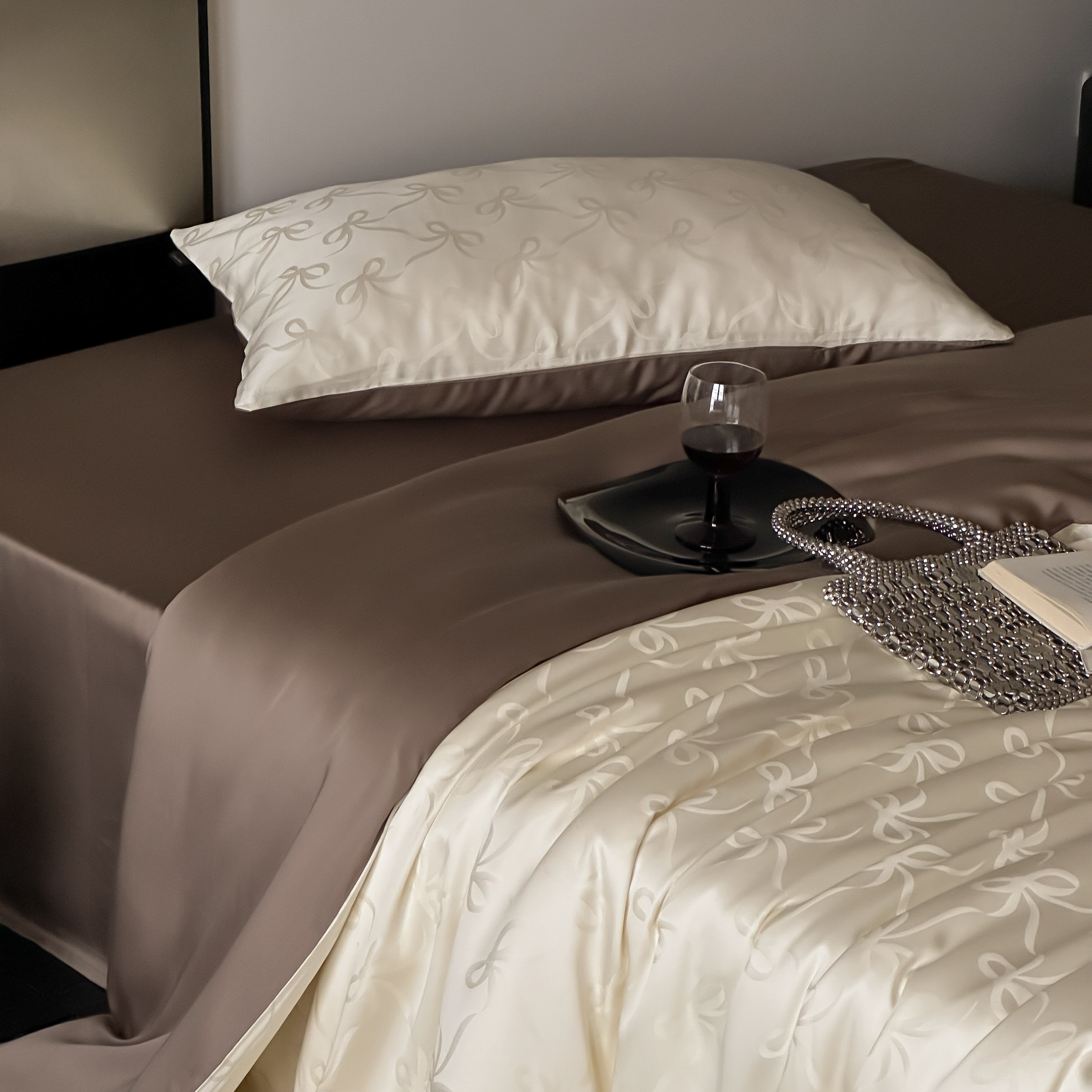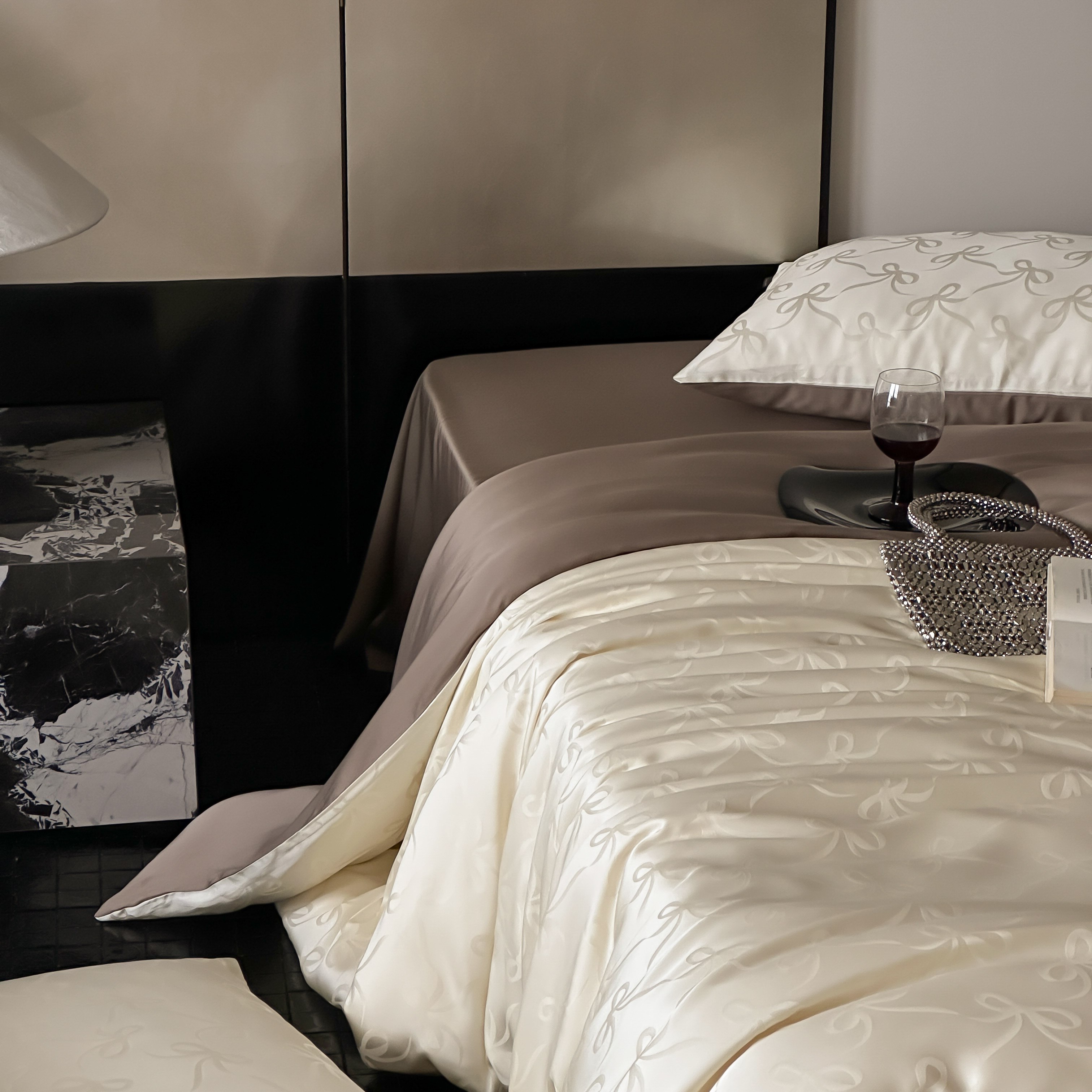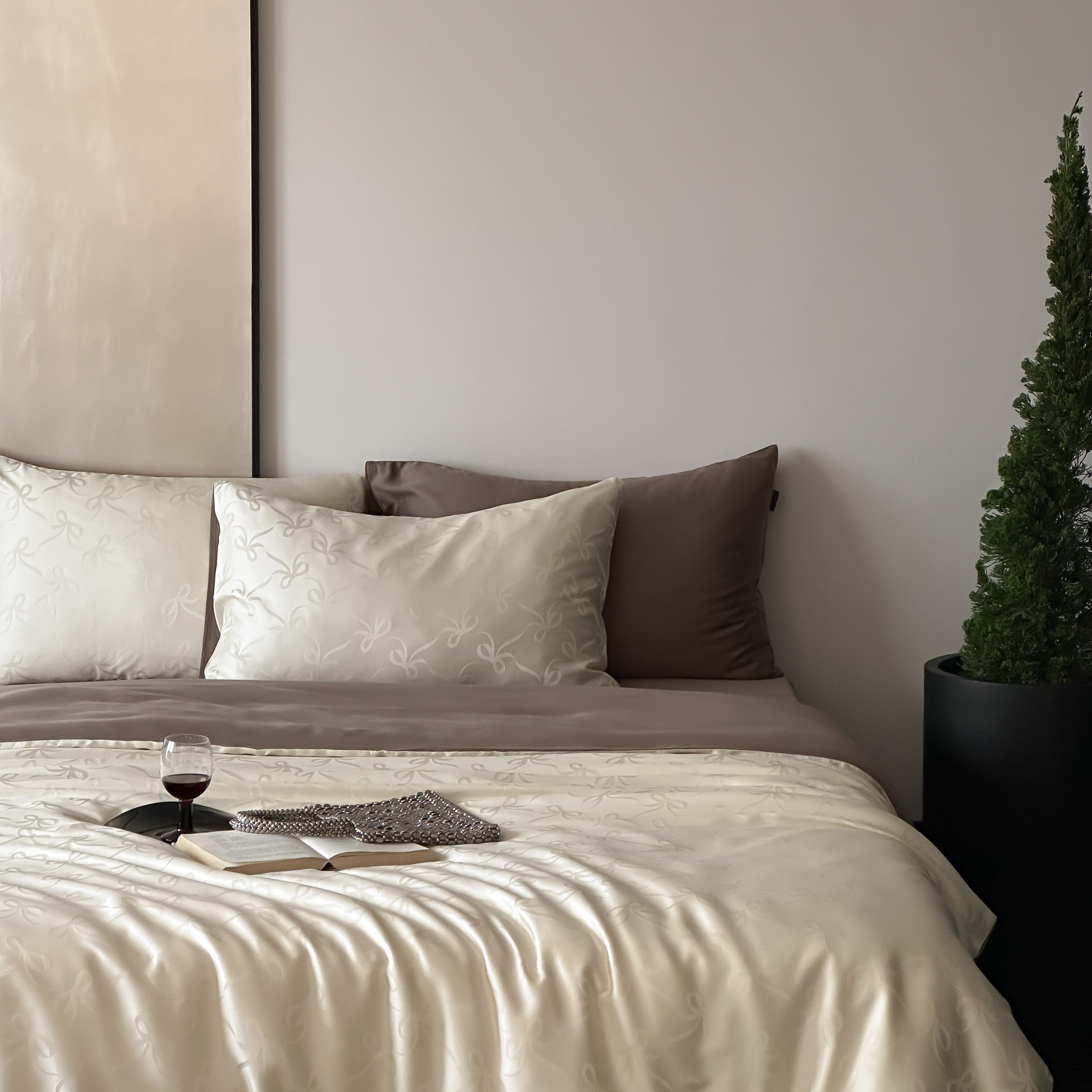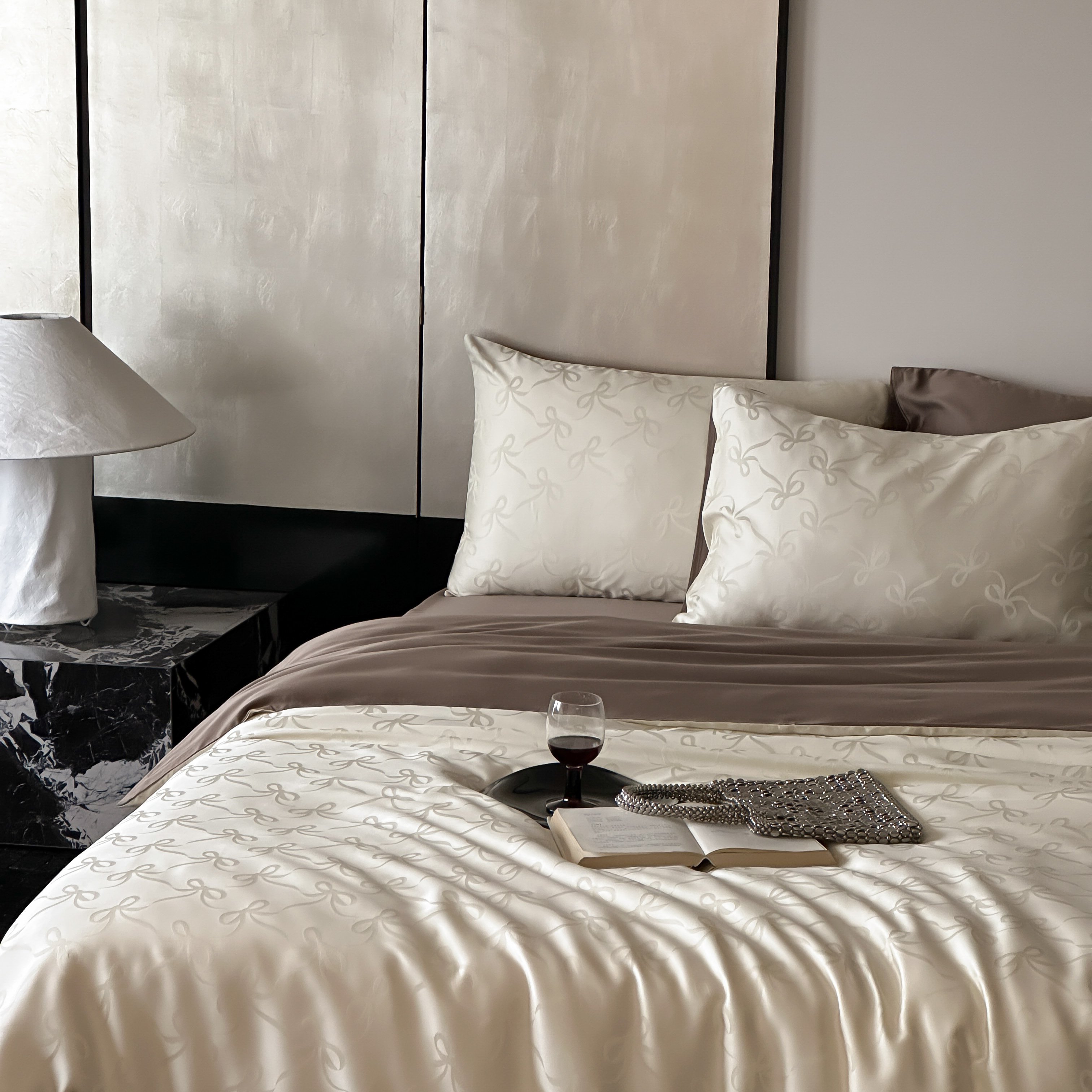 当前位置: 91家纺网 > 商品网购 > 床品套件 > 四件套 > 玉宇阁家居 2025新款60S色织天丝大提花四件套-半岛茶 半岛茶-松栗+奶油色