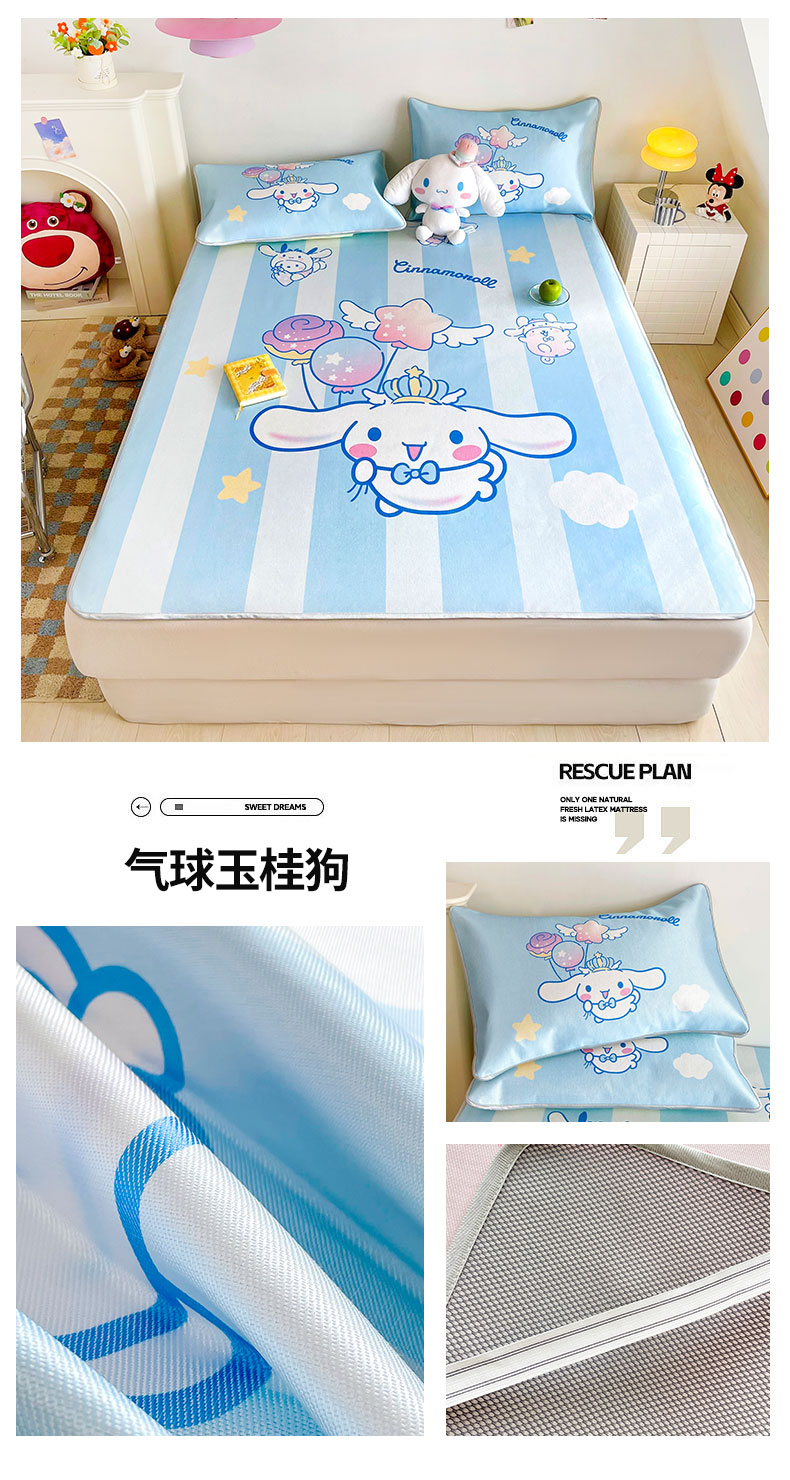 (总)米帛家纺 2024新款大版三丽鸥A类凉感丝乳胶凉席 床笠款,樱桃凯蒂猫,大脸凯蒂猫,好学库洛米,滑板帕恰狗,旅行玉桂狗,绿色库洛米,气球玉桂狗,巧克力库洛米,爆米花帕恰狗