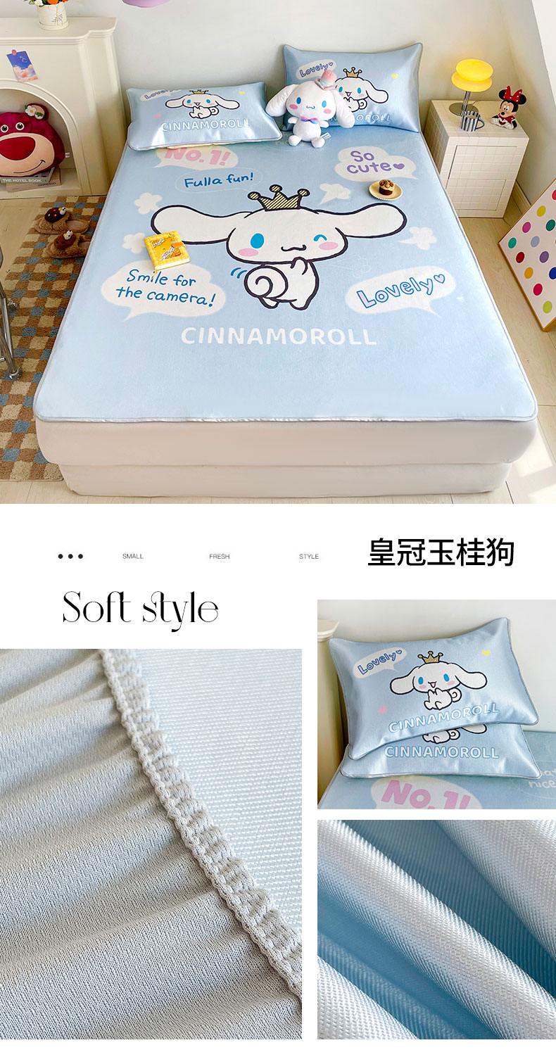 米帛家纺 2025新款 A类大版三丽鸥冰藤席-床笠款 皇冠玉桂狗