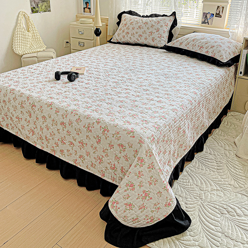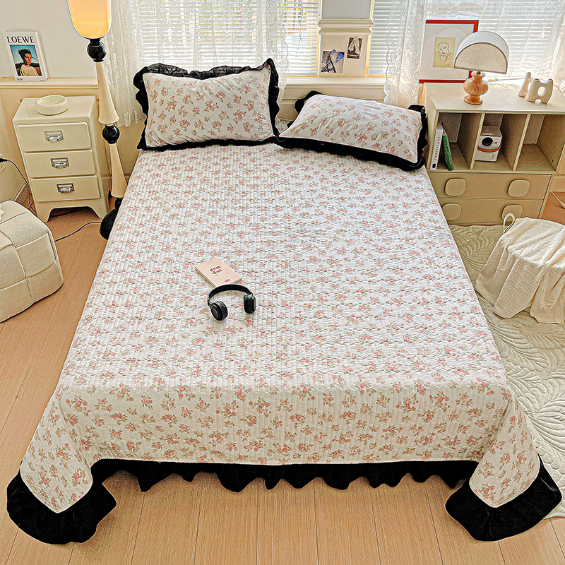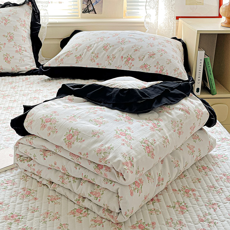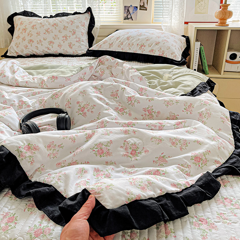 商品名称:米莱家纺 2025新款A类赫本风针织双层纱夏被床盖四件套 繁花