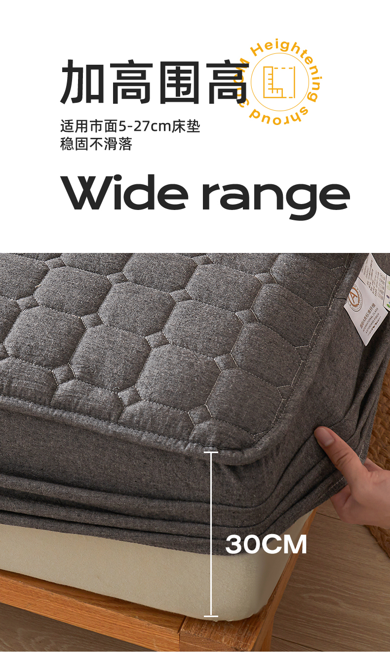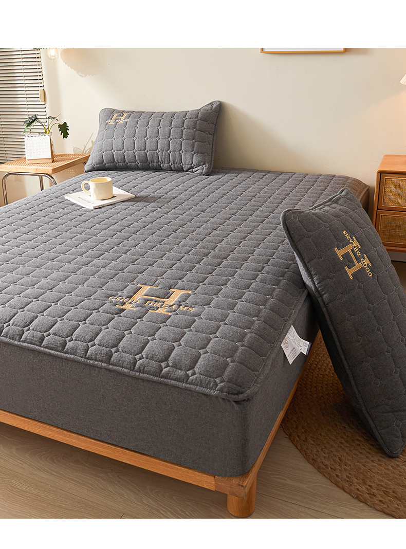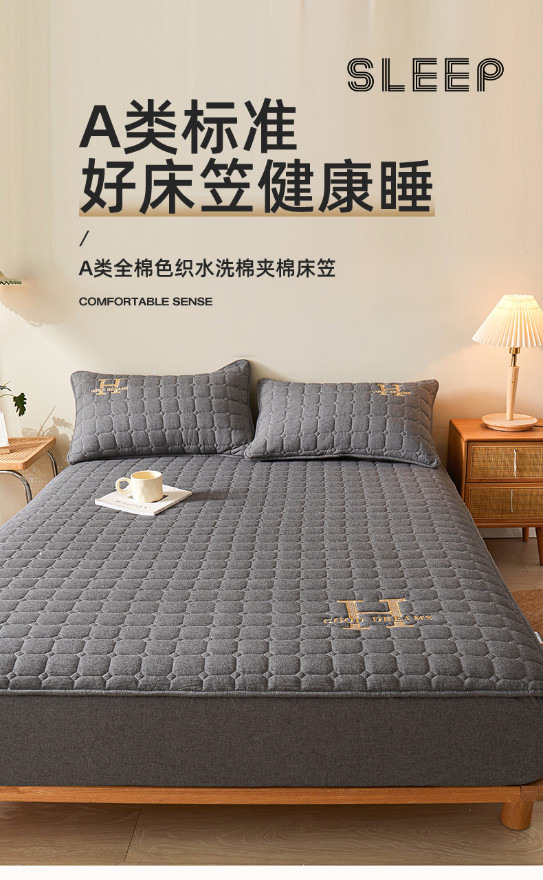 恒爱家纺 2025新款H系列全棉色织水洗棉床笠 经典灰