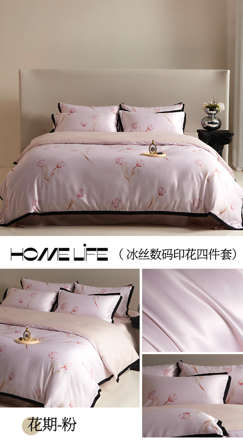 商品名称:优悦 2025新款冰丝数码印花四件套 花期-粉