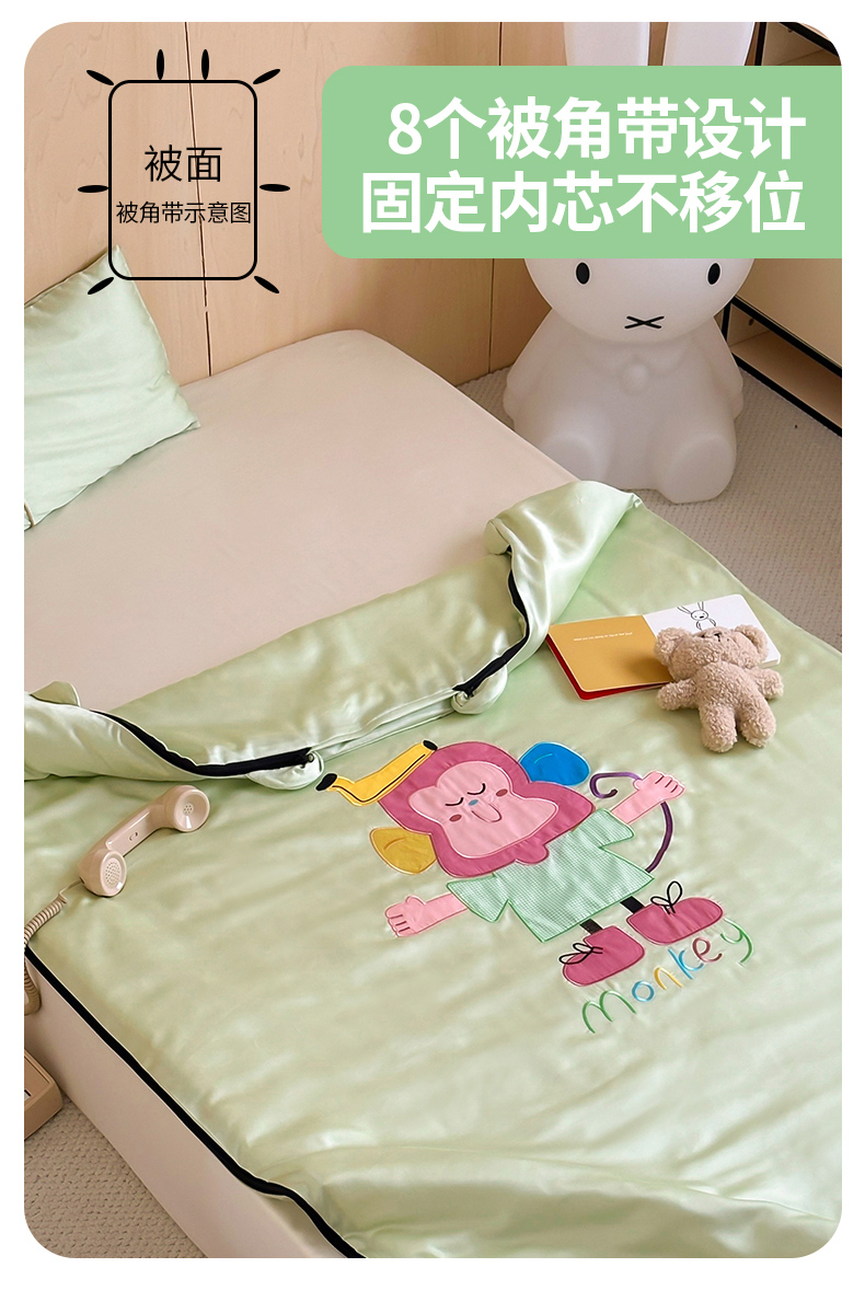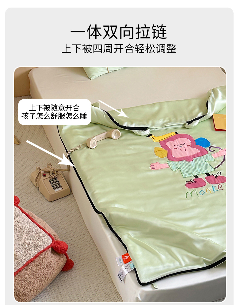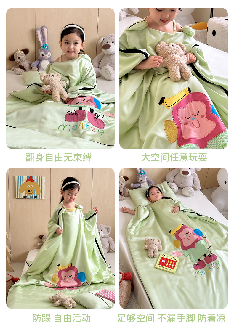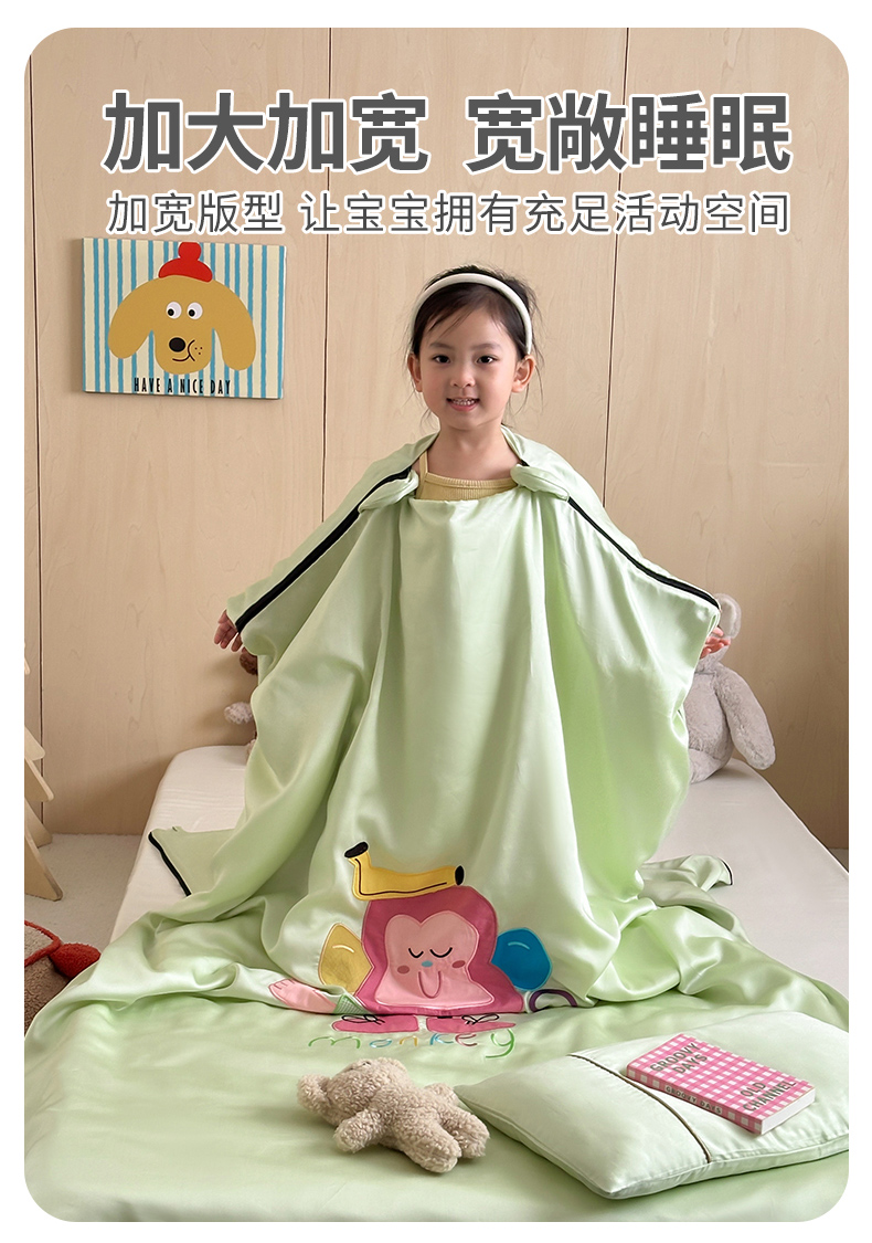当前位置: 91家纺网 > 商品网购 > 婴童用品 > 婴童睡袋/防踢被 > 喜多兔儿童家纺 2025新款60S兰精天丝睡袋防踢被 绿色微笑小猴