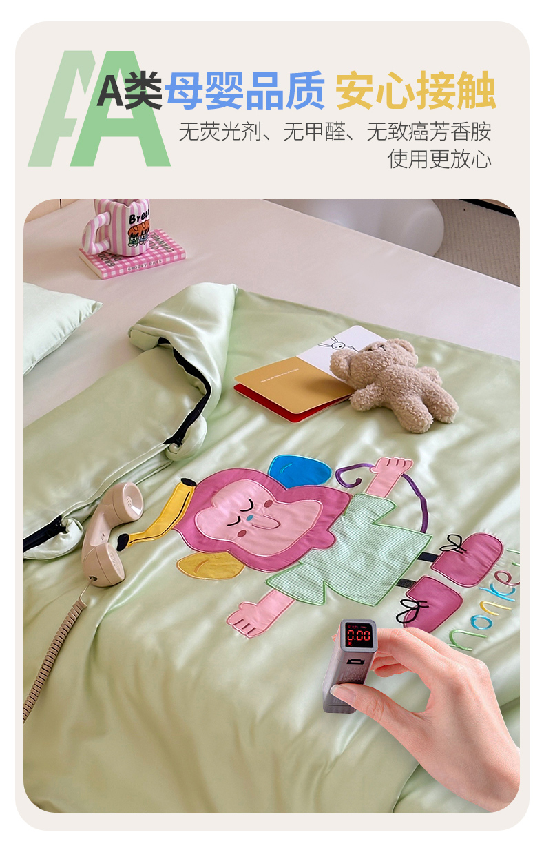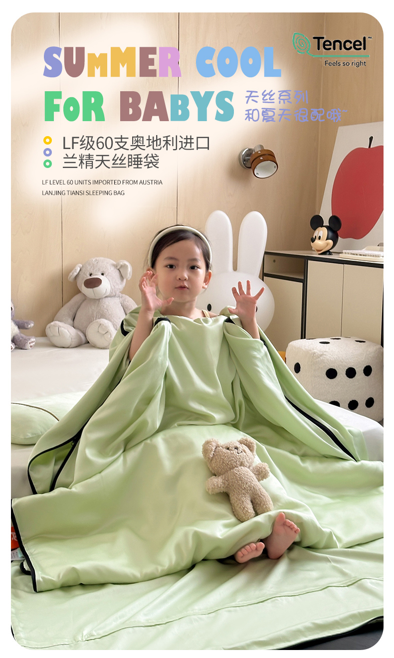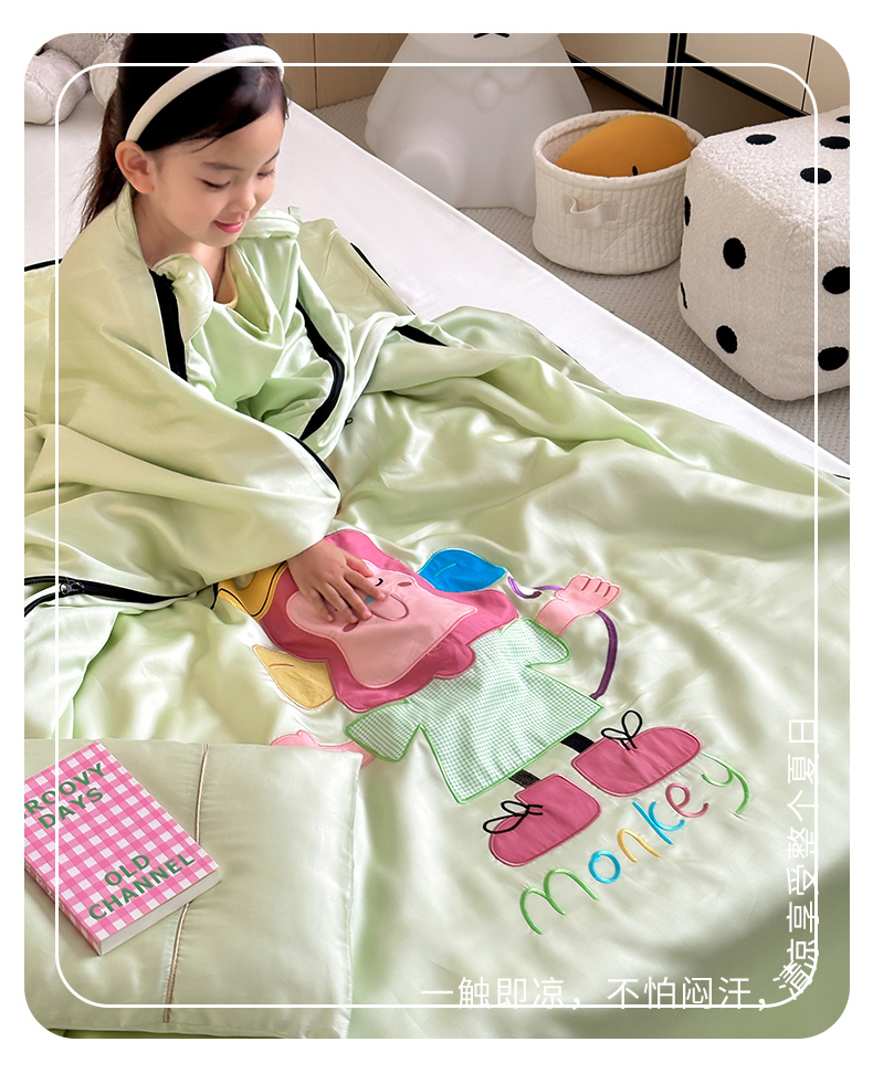 当前位置: 91家纺网 > 商品网购 > 婴童用品 > 婴童睡袋/防踢被 > 喜多兔儿童家纺 2025新款60S兰精天丝睡袋防踢被 绿色微笑小猴