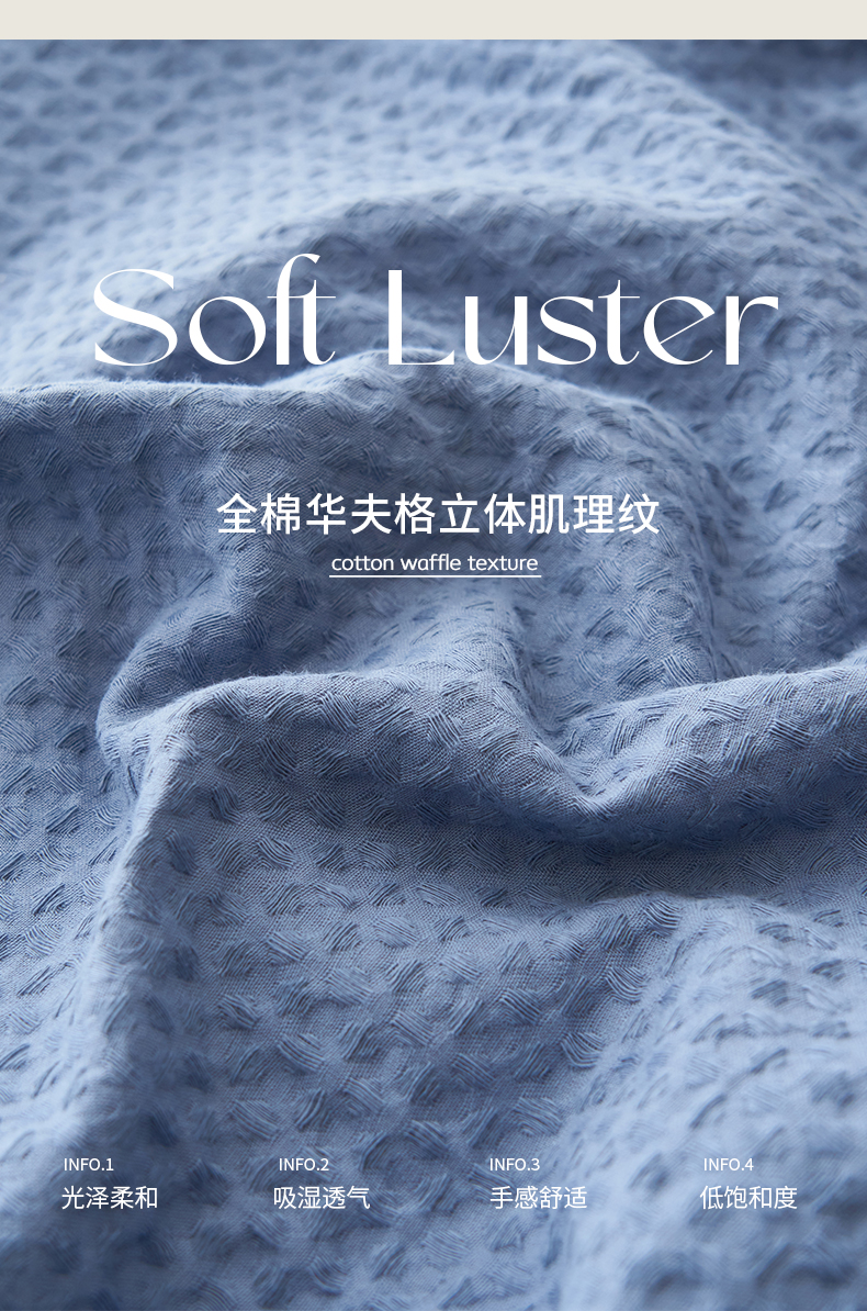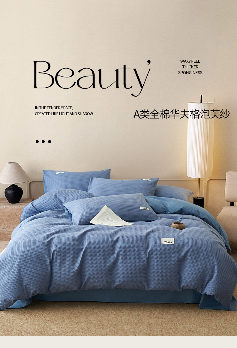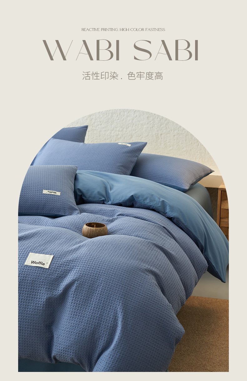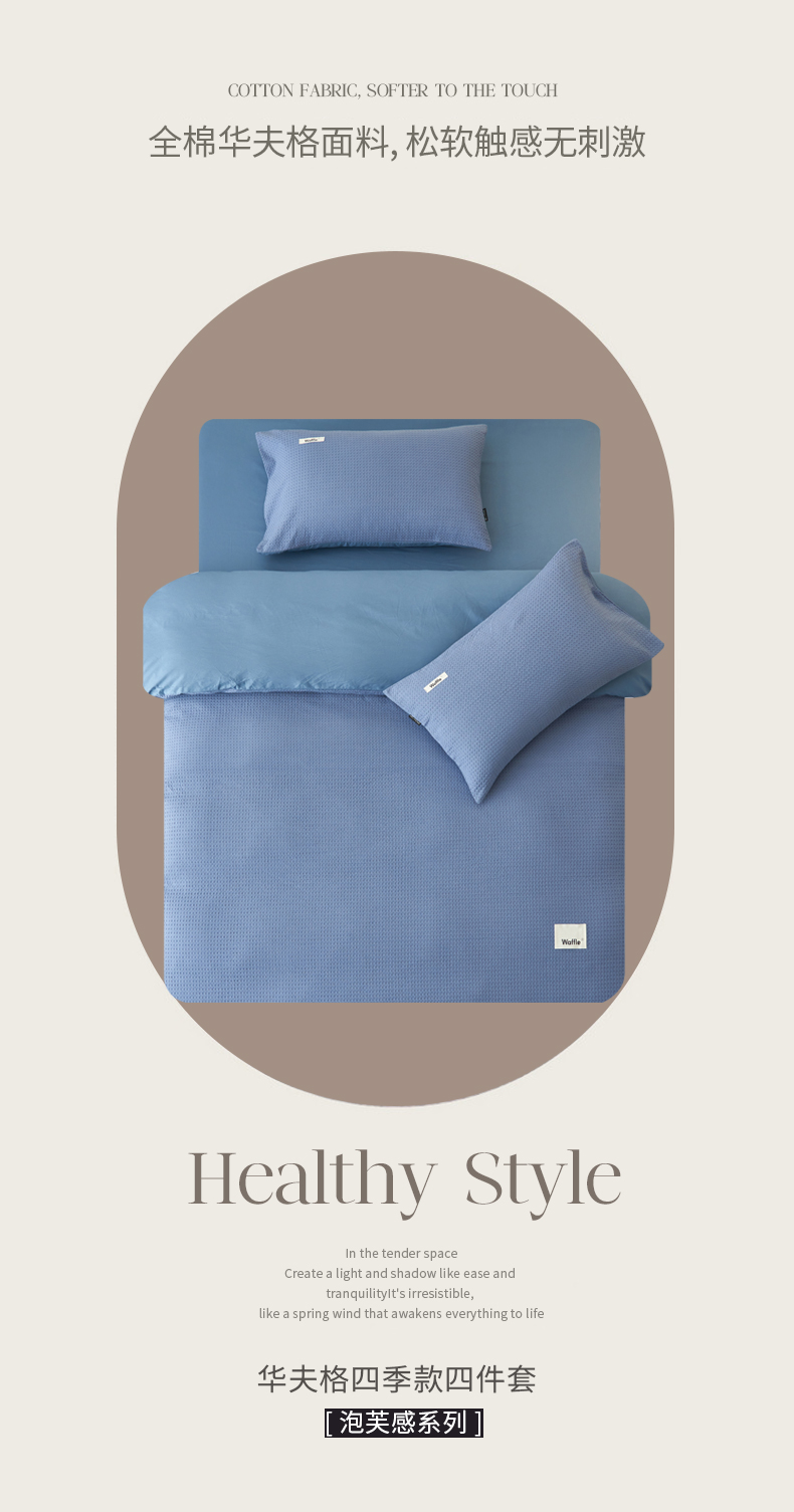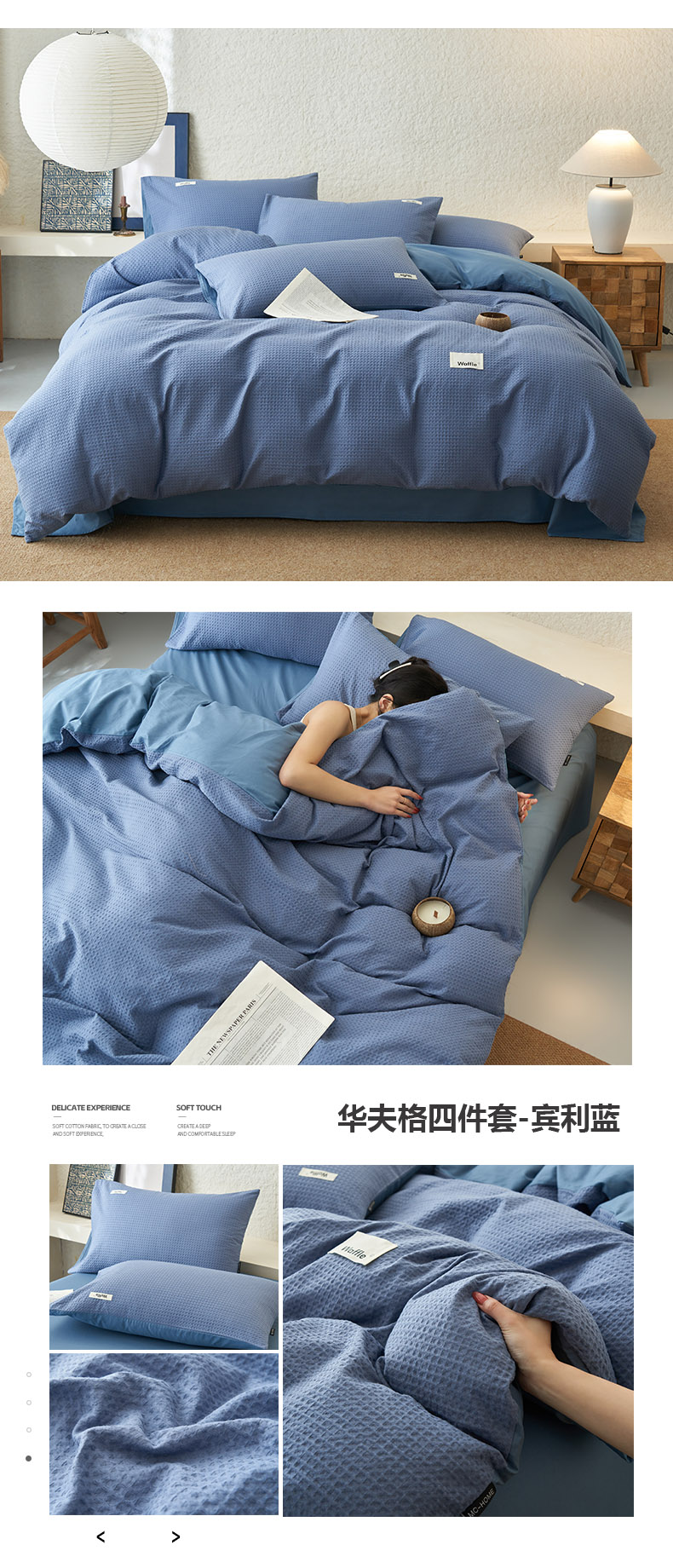 当前位置: 91家纺网 > 商品网购 > 床品套件 > 四件套 > 全棉普通四件套 > 寐绸家纺 2025新款纯棉华夫格四件套 华夫格四件套-宾利蓝