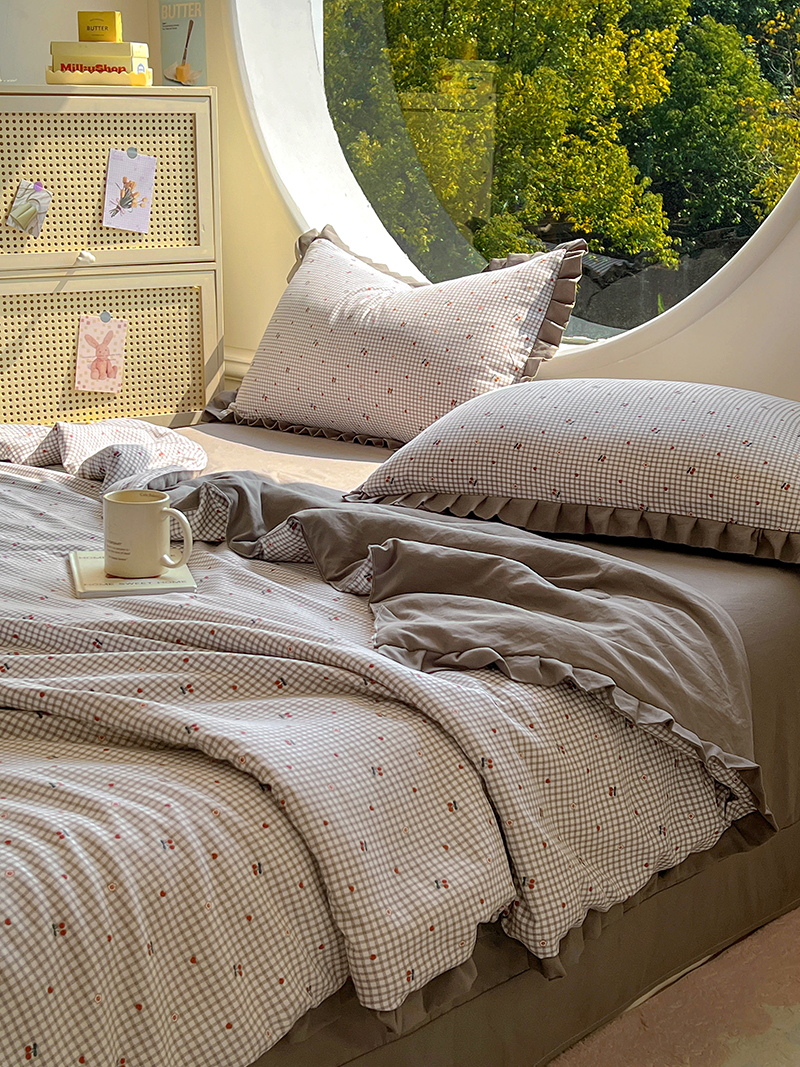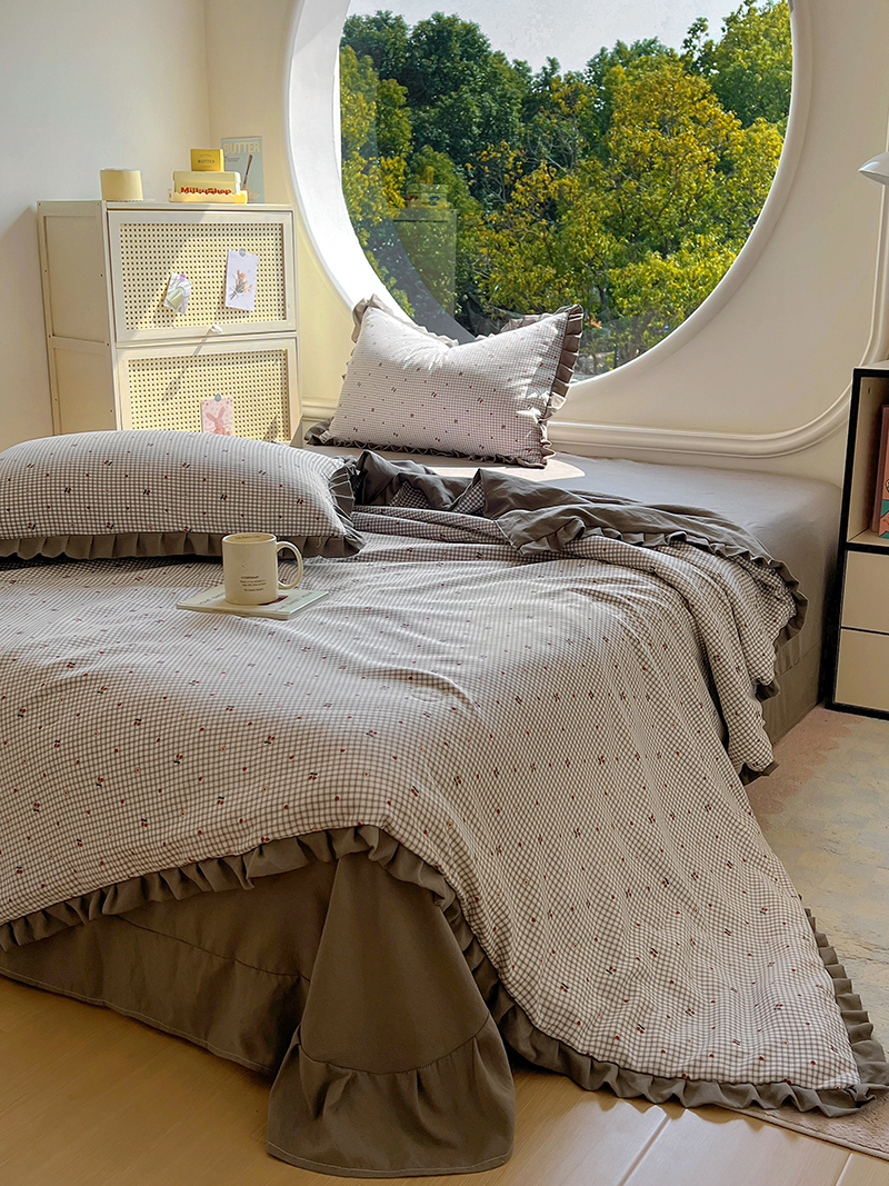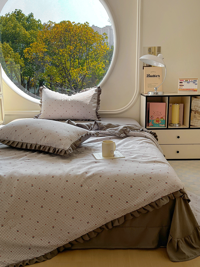 (总)欧尚 2026新款花边床盖四件套,春和,花束,花野,灰樱桃,咖爱心,咖豹纹,咖啡小猫,梨花落,绿爱心,梦境,木马,奶油波点,暖橘枝,暖心,人间草木,田园兔,小女孩,星愿,摇摇马,紫爱心,紫豹纹,紫苏