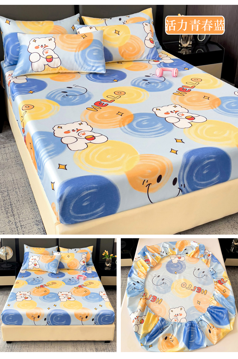 纽缦家纺 2025新款印花冰丝床笠 活力青春蓝