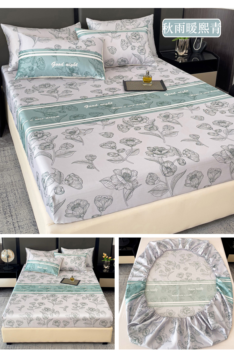 纽缦家纺 2025新款印花冰丝床笠 秋雨暖熙青