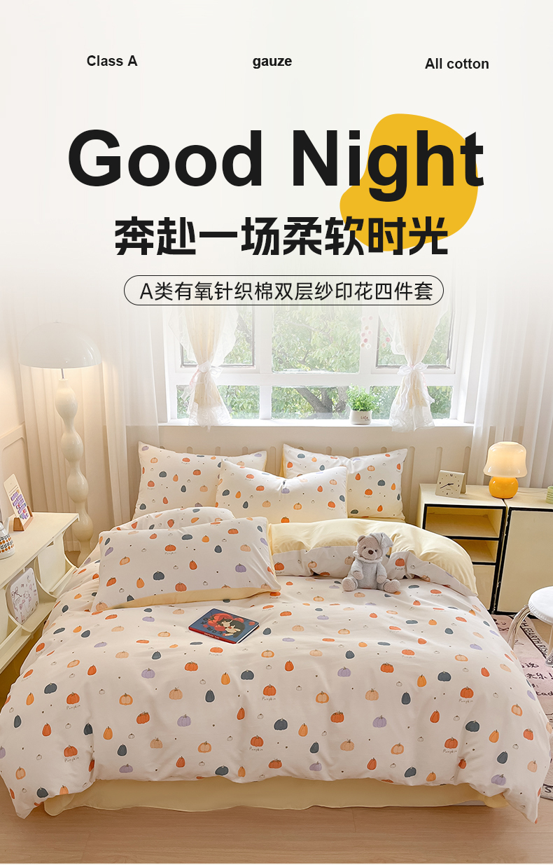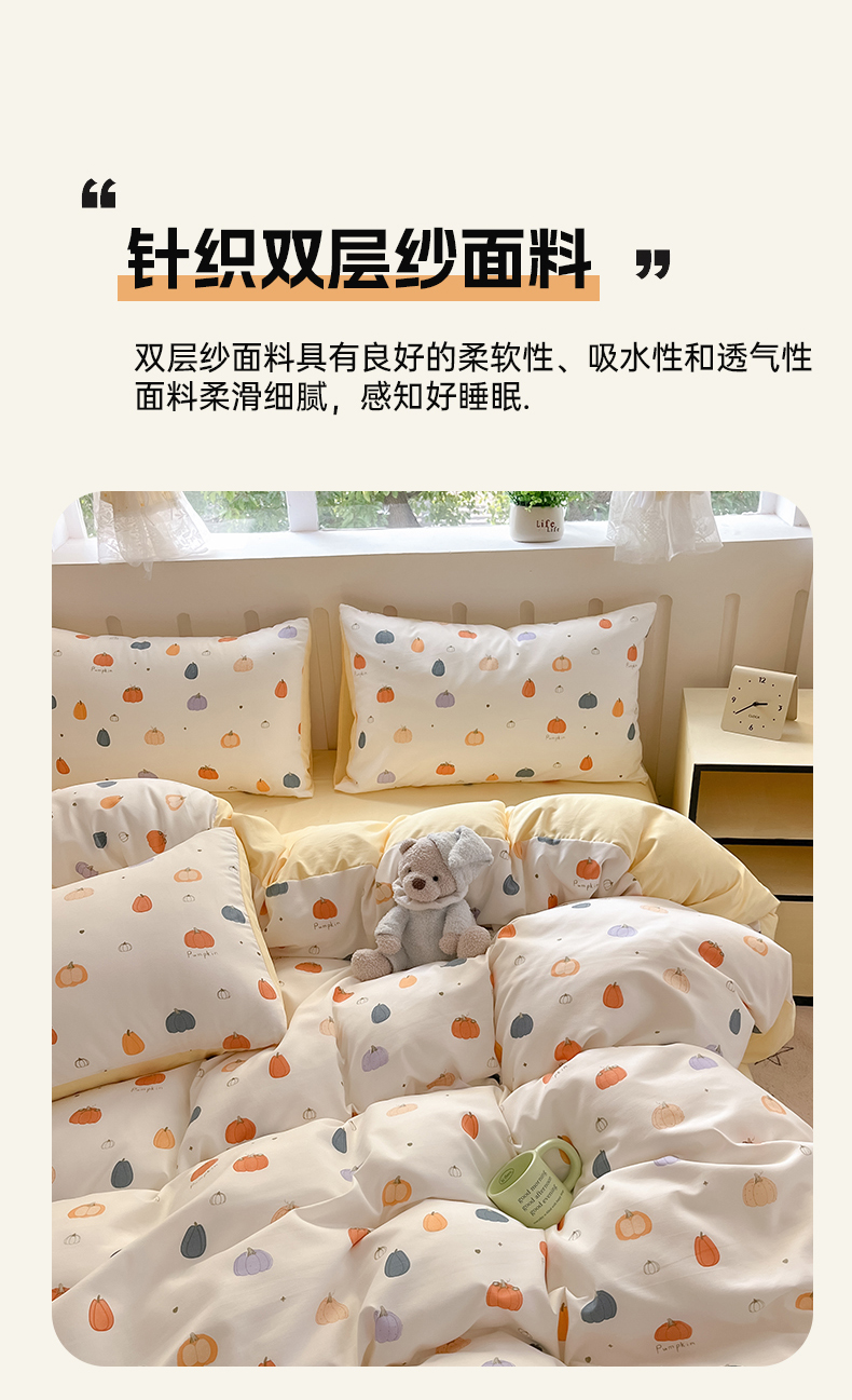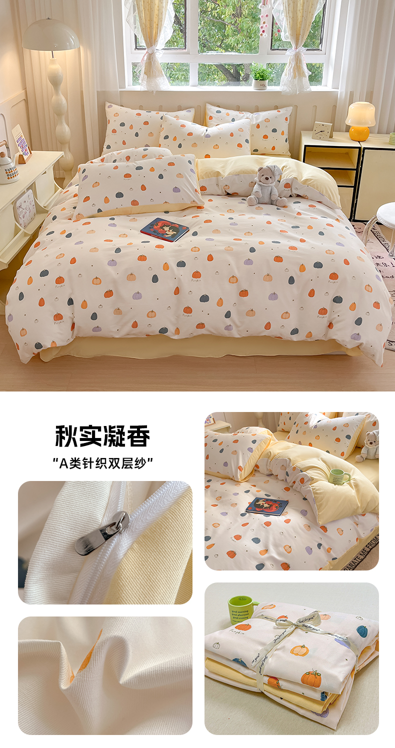 当前位置: 91家纺网 > 商品网购 > 床品套件 > 四件套 > 其它四件套 > 玖明2025新款A类加厚柔软针织棉双层纱四件套 秋实凝香