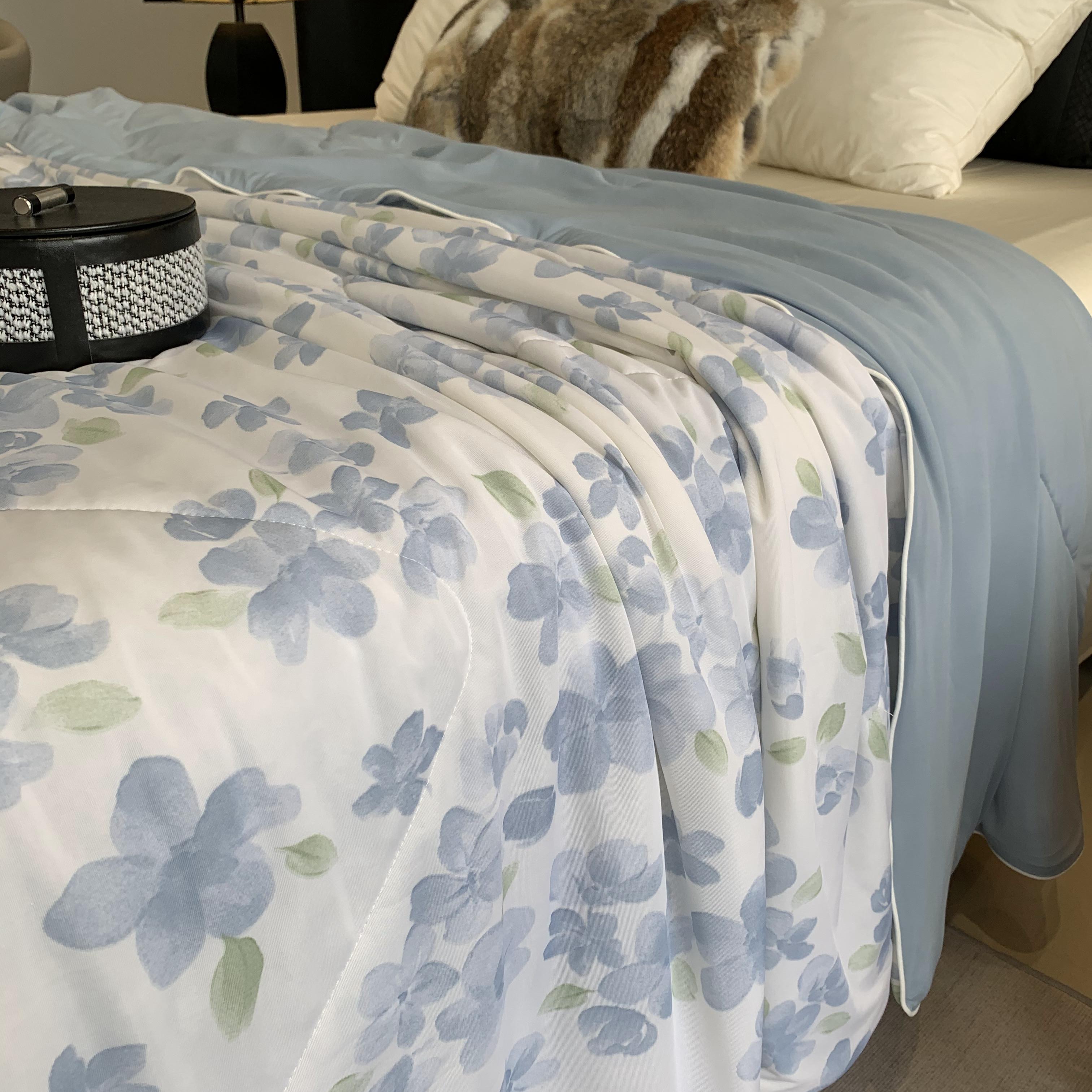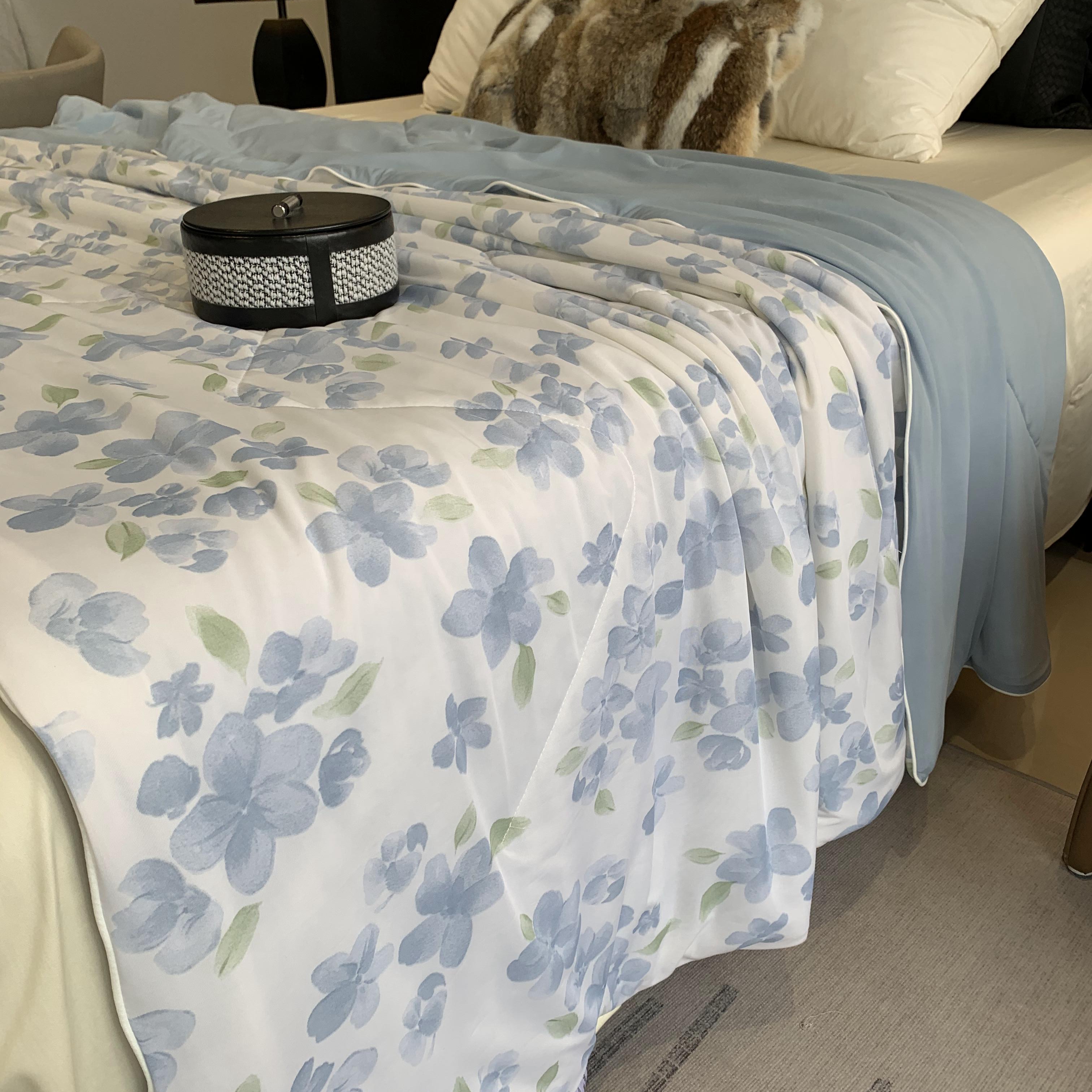 2025新款小冰皮夏凉被锦纶氨纶面料空调夏被凉感丝单夏被空调被 清凉一夏蓝