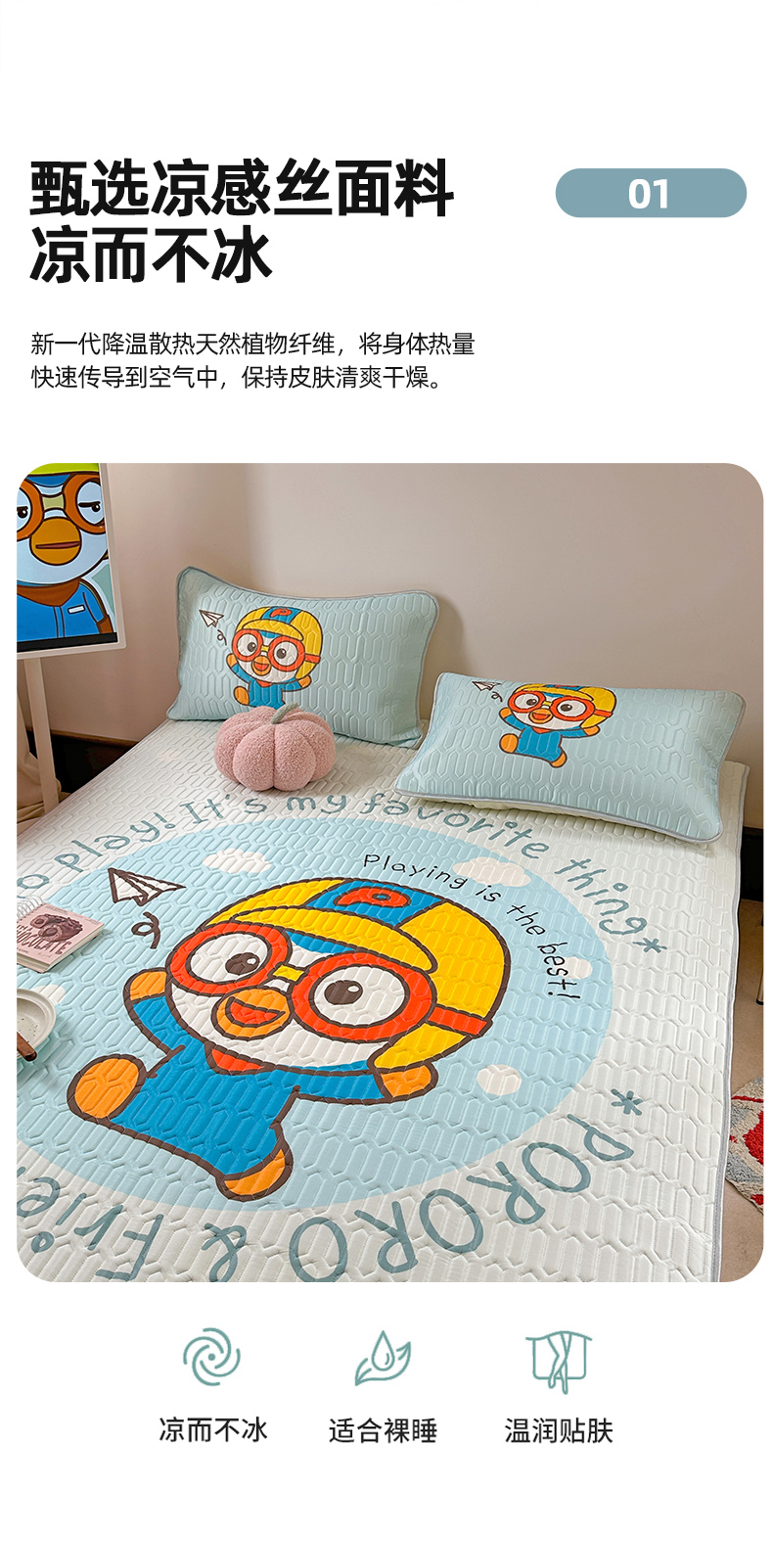 商品名称:金爱家2025新款啵乐乐乳胶凉席 凉席-奔跑乐乐