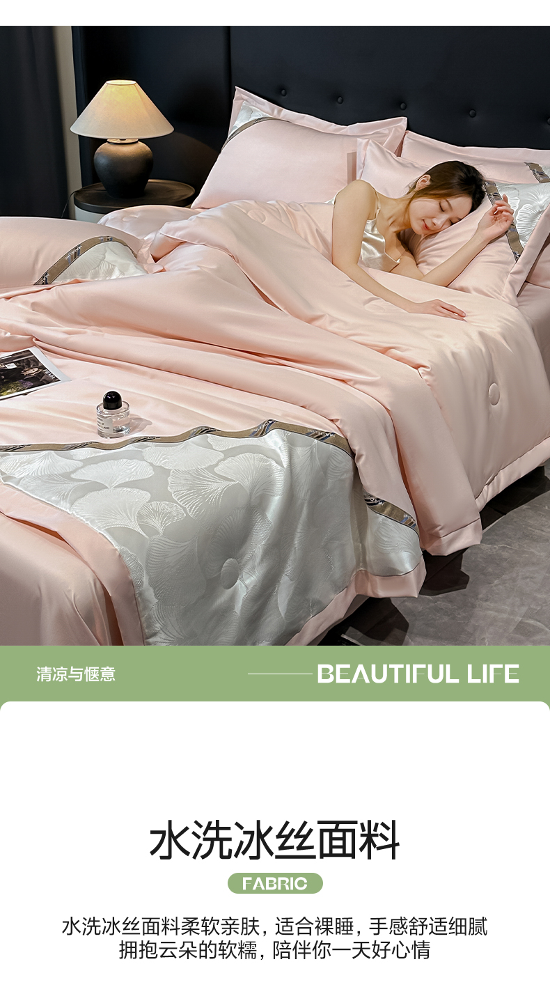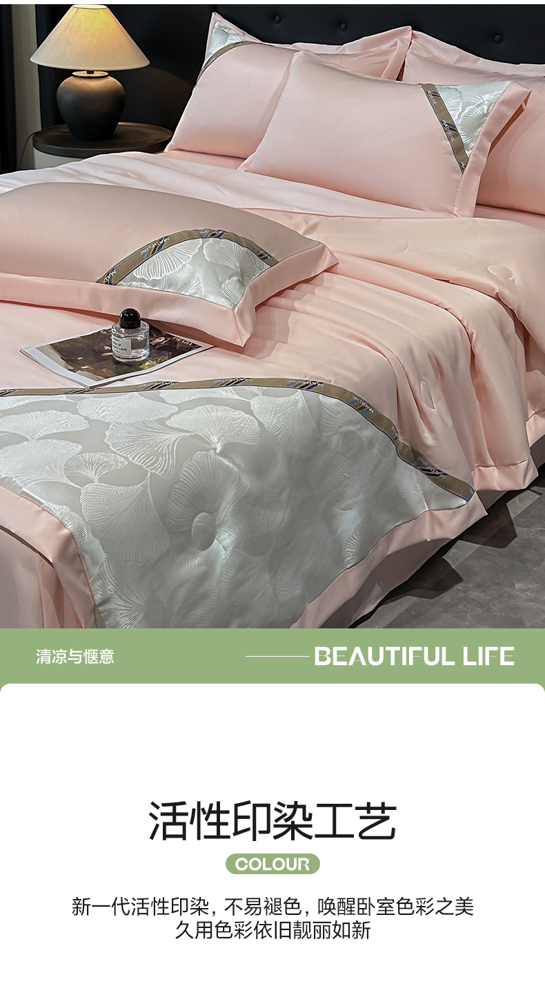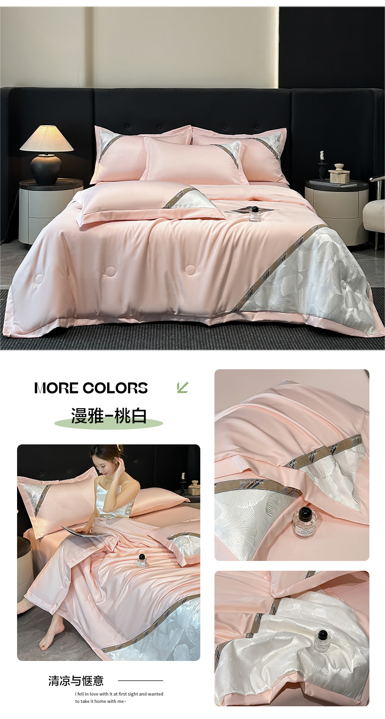 当前位置: 91家纺网 > 商品网购 > 床品套件 > 四件套 > 夏被四件套 > 索飞特家纺 2025新款水洗冰丝拼角夏被四件套-漫雅 漫雅-桃白