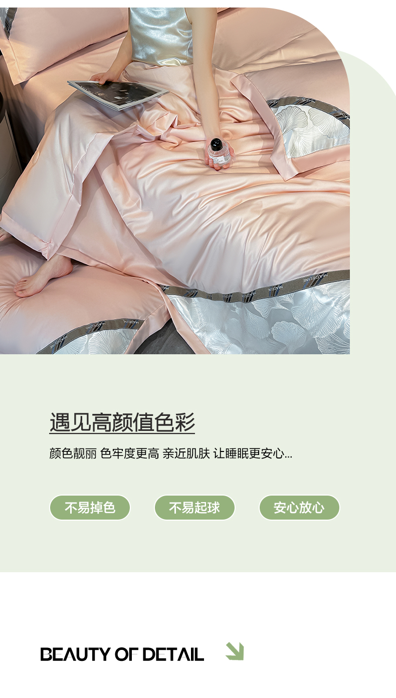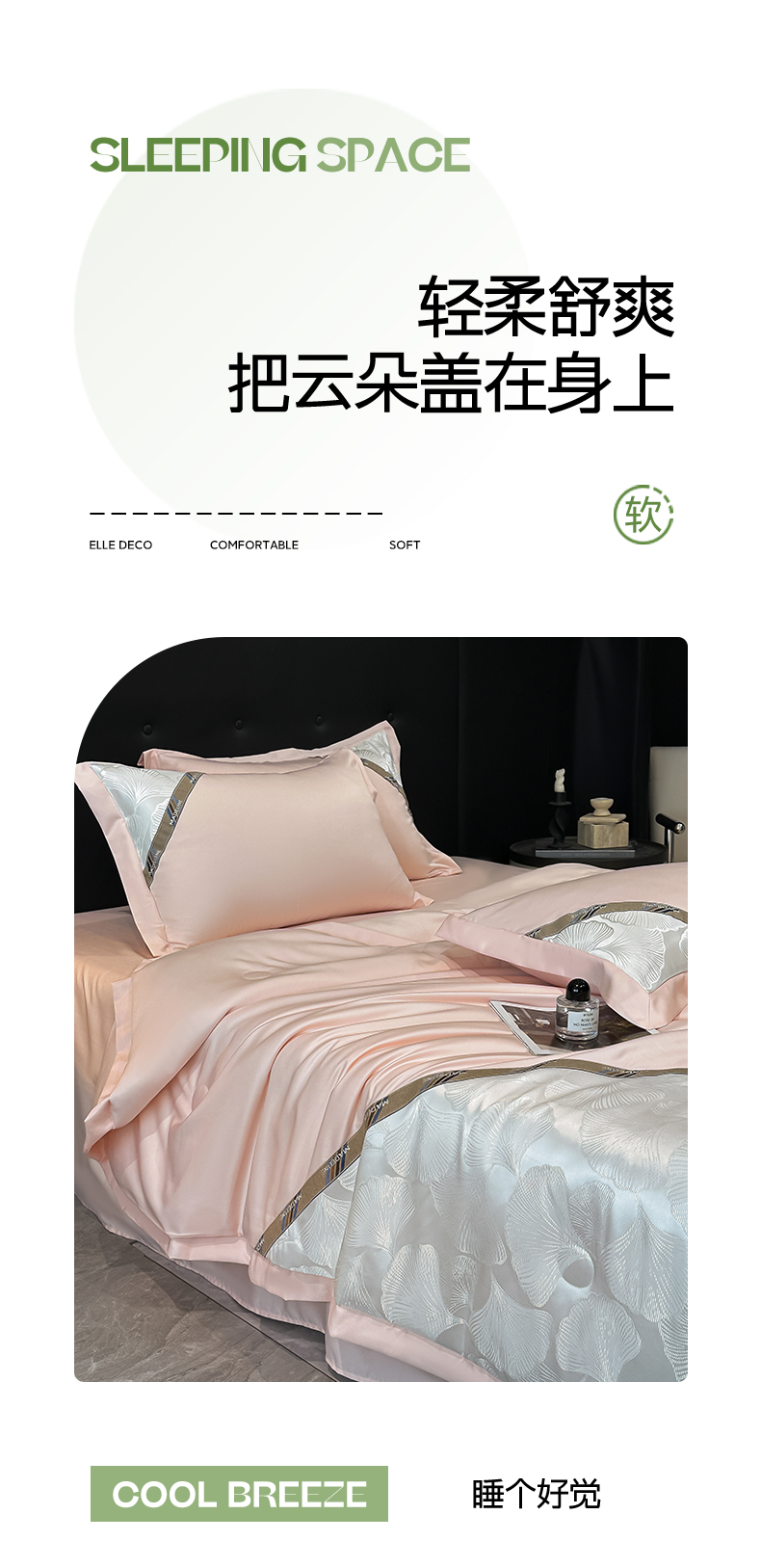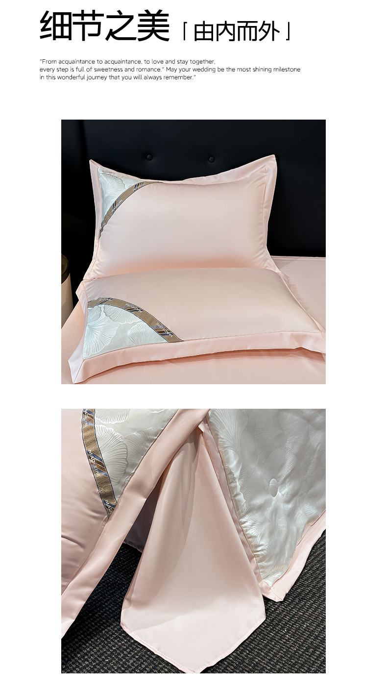 当前位置: 91家纺网 > 商品网购 > 床品套件 > 四件套 > 夏被四件套 > 索飞特家纺 2025新款水洗冰丝拼角夏被四件套-漫雅 漫雅-桃白